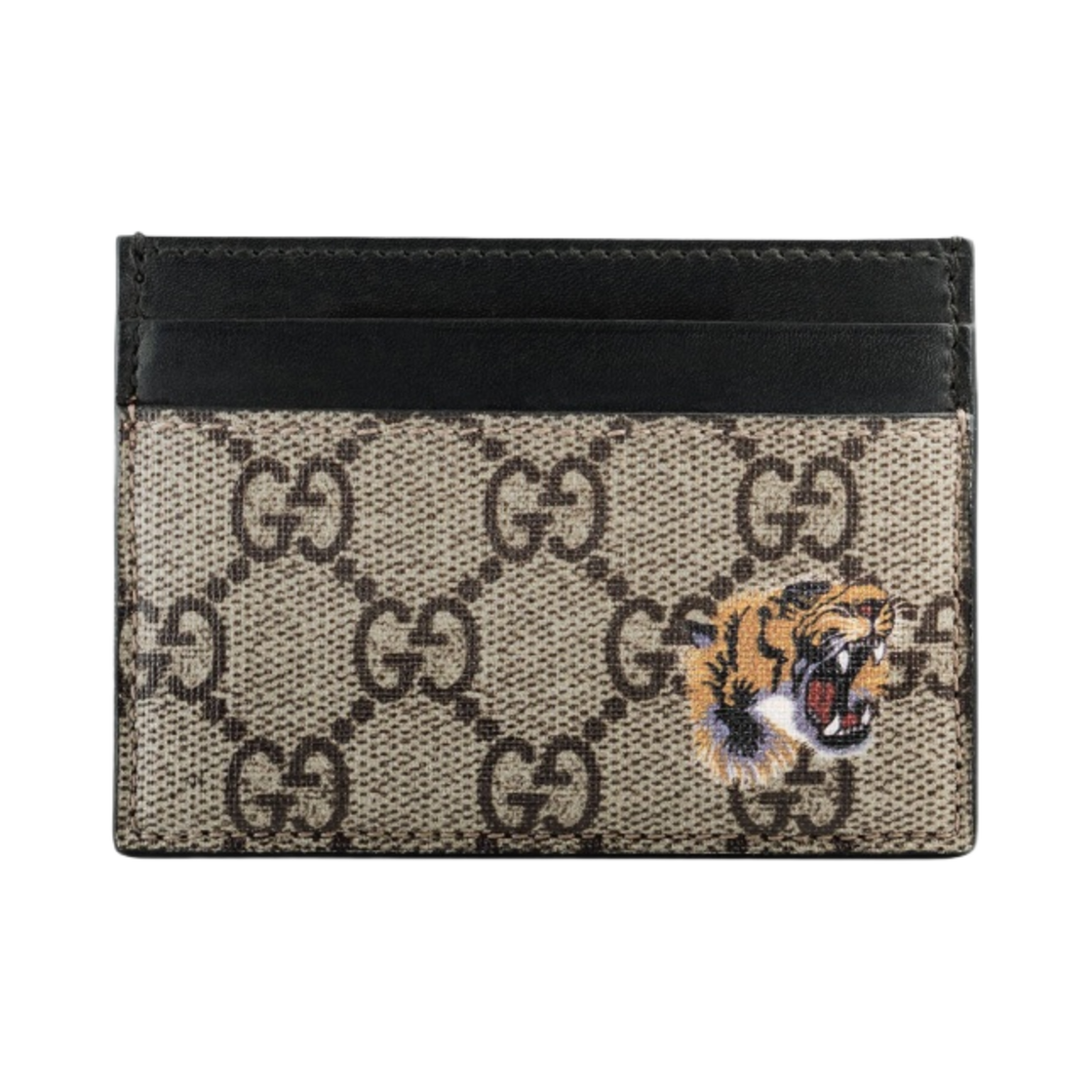 구찌 베스트리에 타이거 프린트 카드 케이스 베이지 에보니