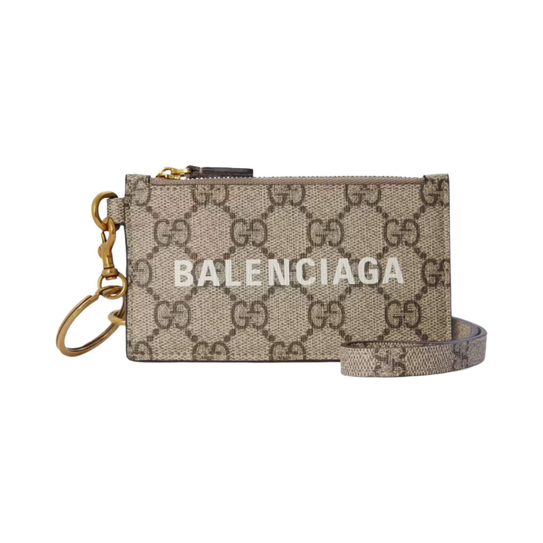 구찌 x 발렌시아가 해커 프로젝트 스트랩 카드 케이스 베이지 에보니