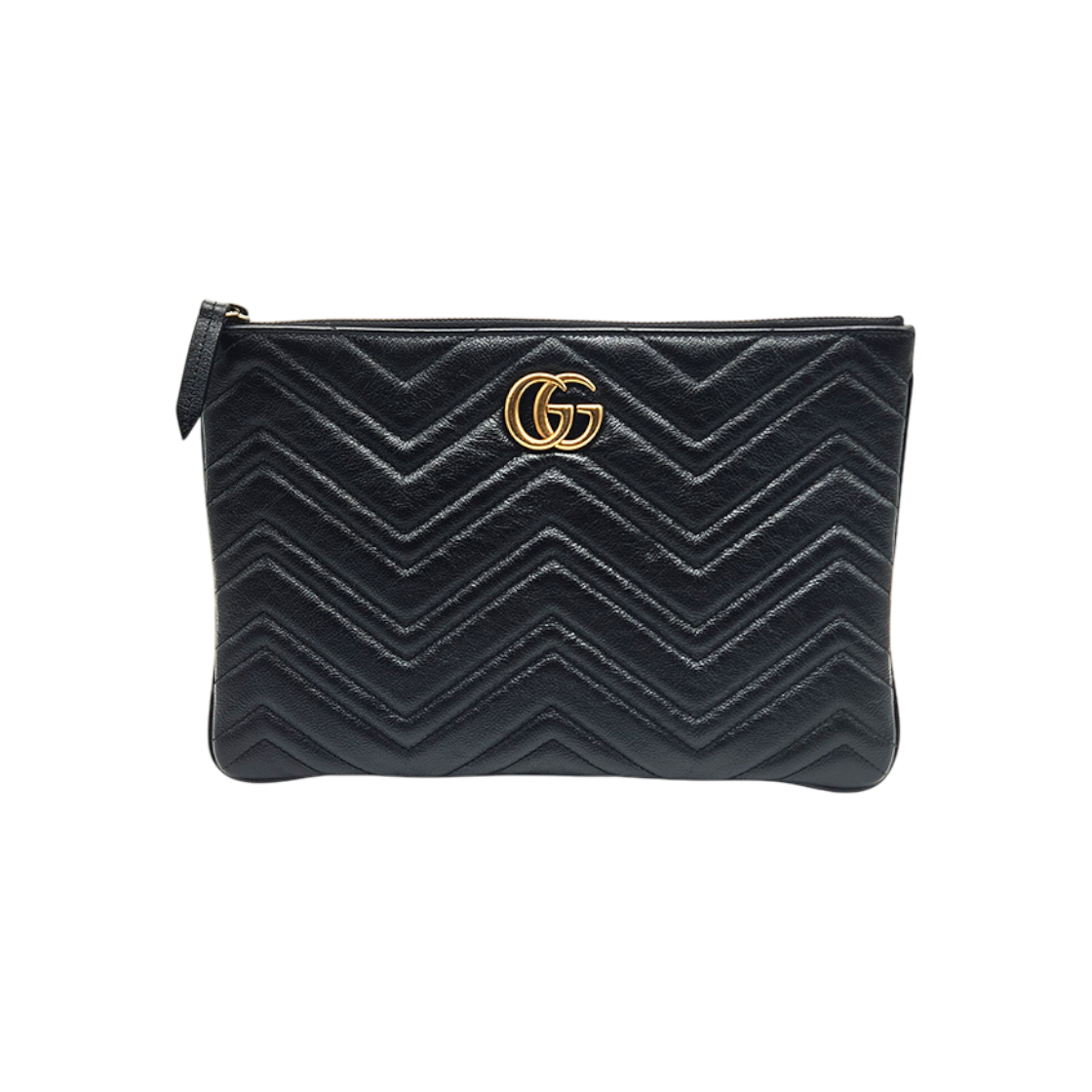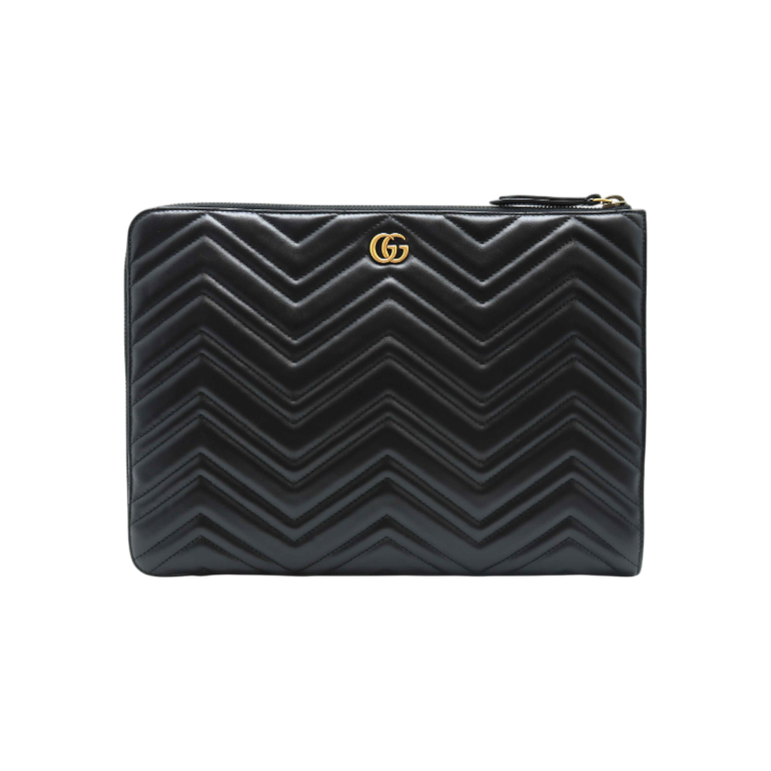 구찌 GG 마몬트 블랙 마틀라세 레더 파우치 클러치