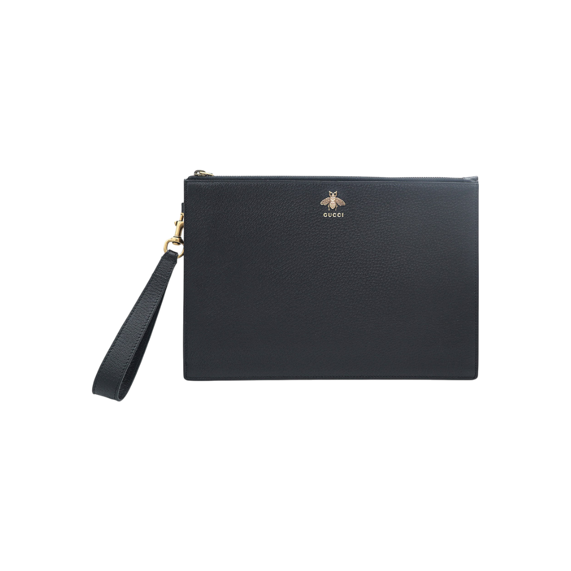 구찌 블랙 레더 골드 비 애니멀리에 클러치