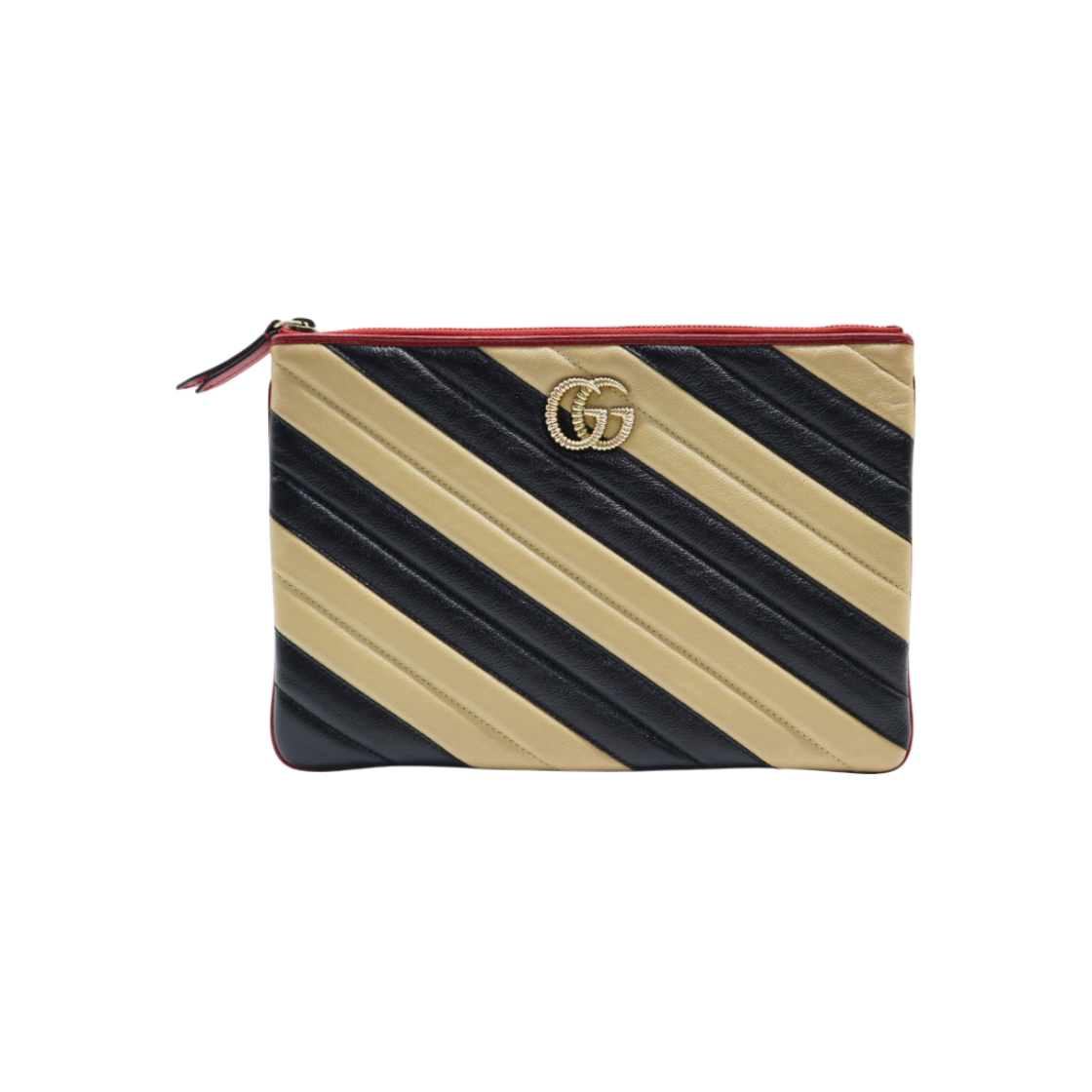 구찌 573814 리미티드 아이보리 네이비 투톤 마틀라세 쉐브론 금장 GG 마몽 클러치