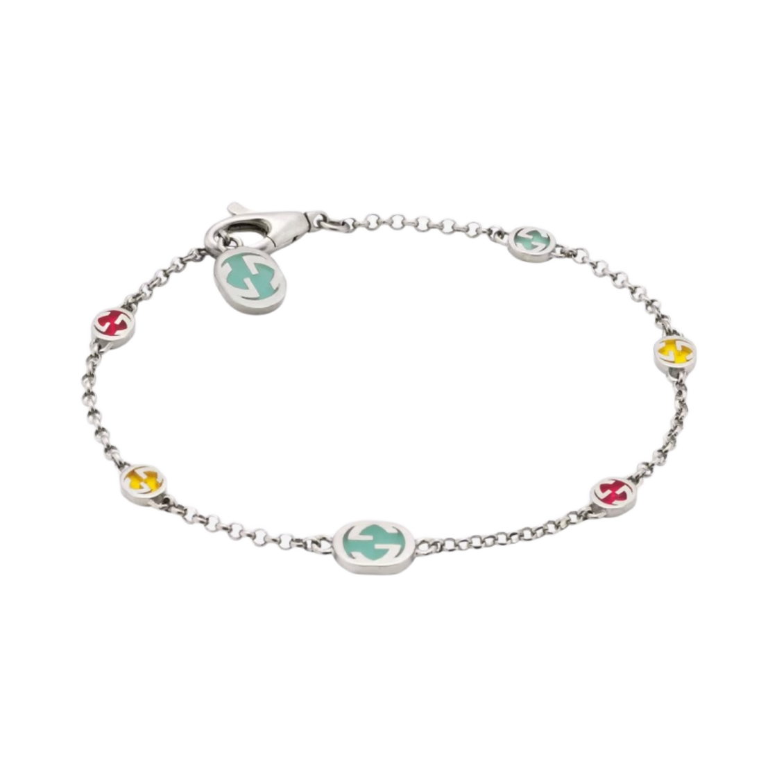 구찌 인터로킹 G 브레이슬릿 멀티컬러 에나멜 실버 에이지드 피니쉬