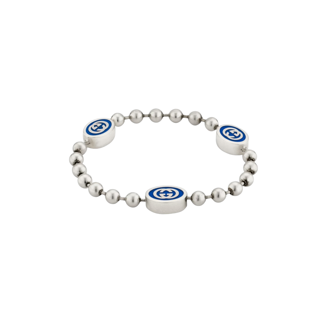 구찌 인터로킹 G 불 체인 브레이슬릿 실버 블루 에나멜