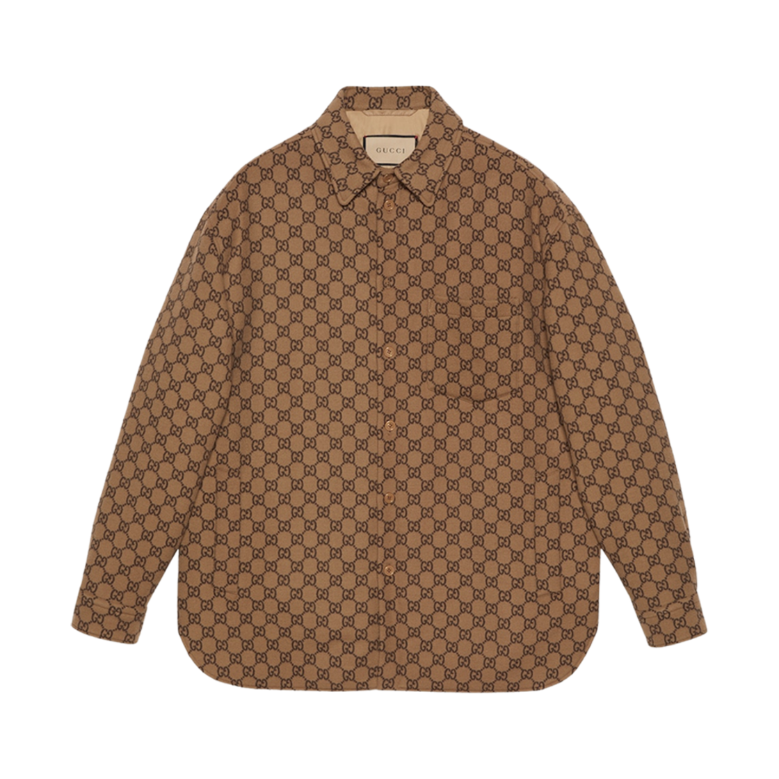 구찌 GG 울 플란넬 패딩 오버셔츠 카멜 에보니