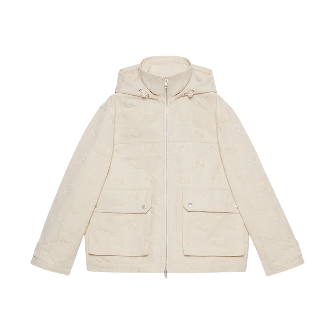 (W) 구찌 GG 코튼 캔버스 푸퍼 자켓 오프 화이트