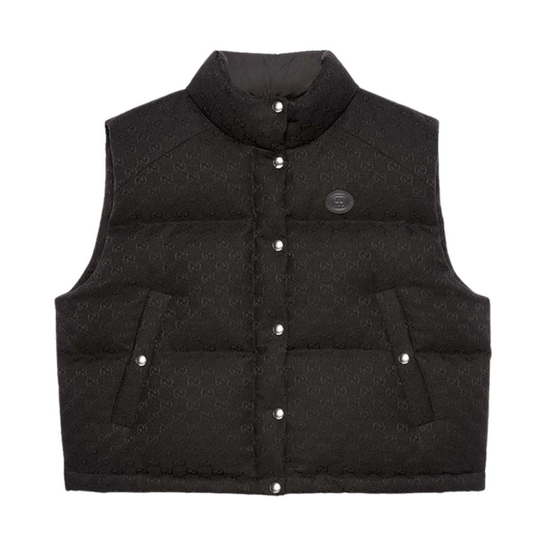 (W) 구찌 GG 코튼 캔버스 푸퍼 베스트 블랙