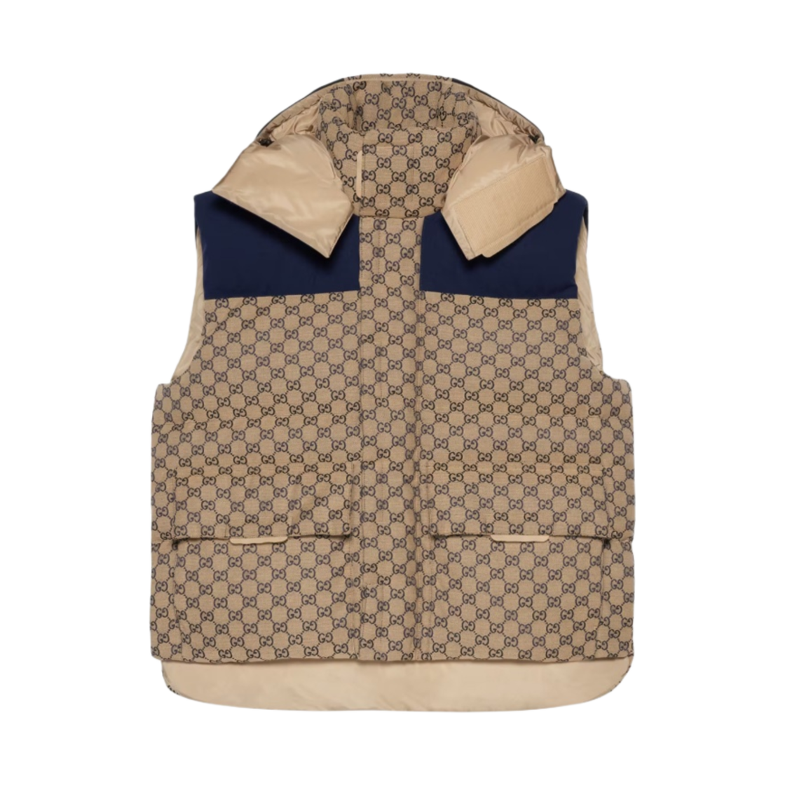 구찌 디테처블 후드 GG 캔버스 다운 베스트 베이지 블루