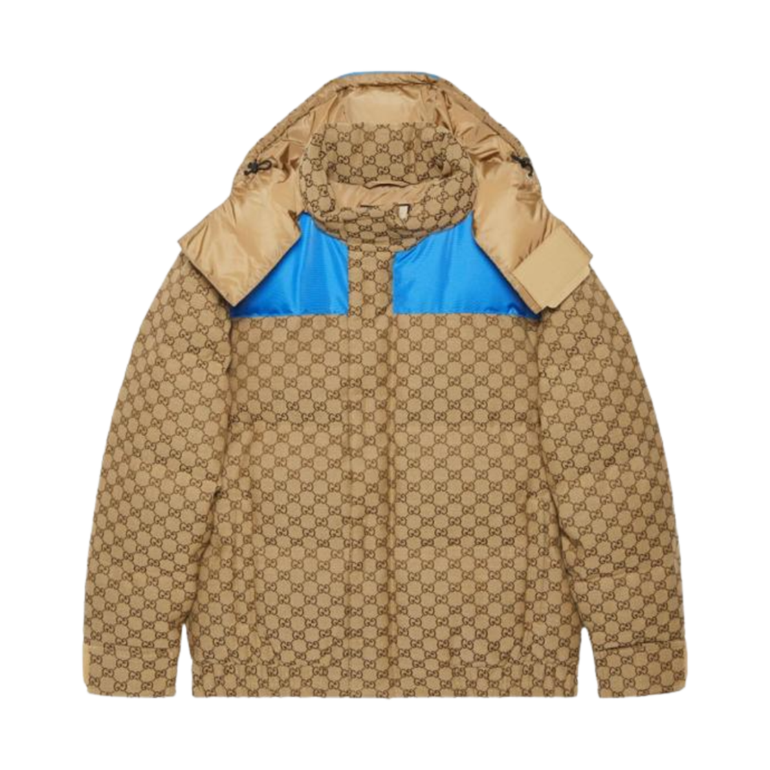 구찌 GG 캔버스 구스 다운 자켓 베이지 블루
