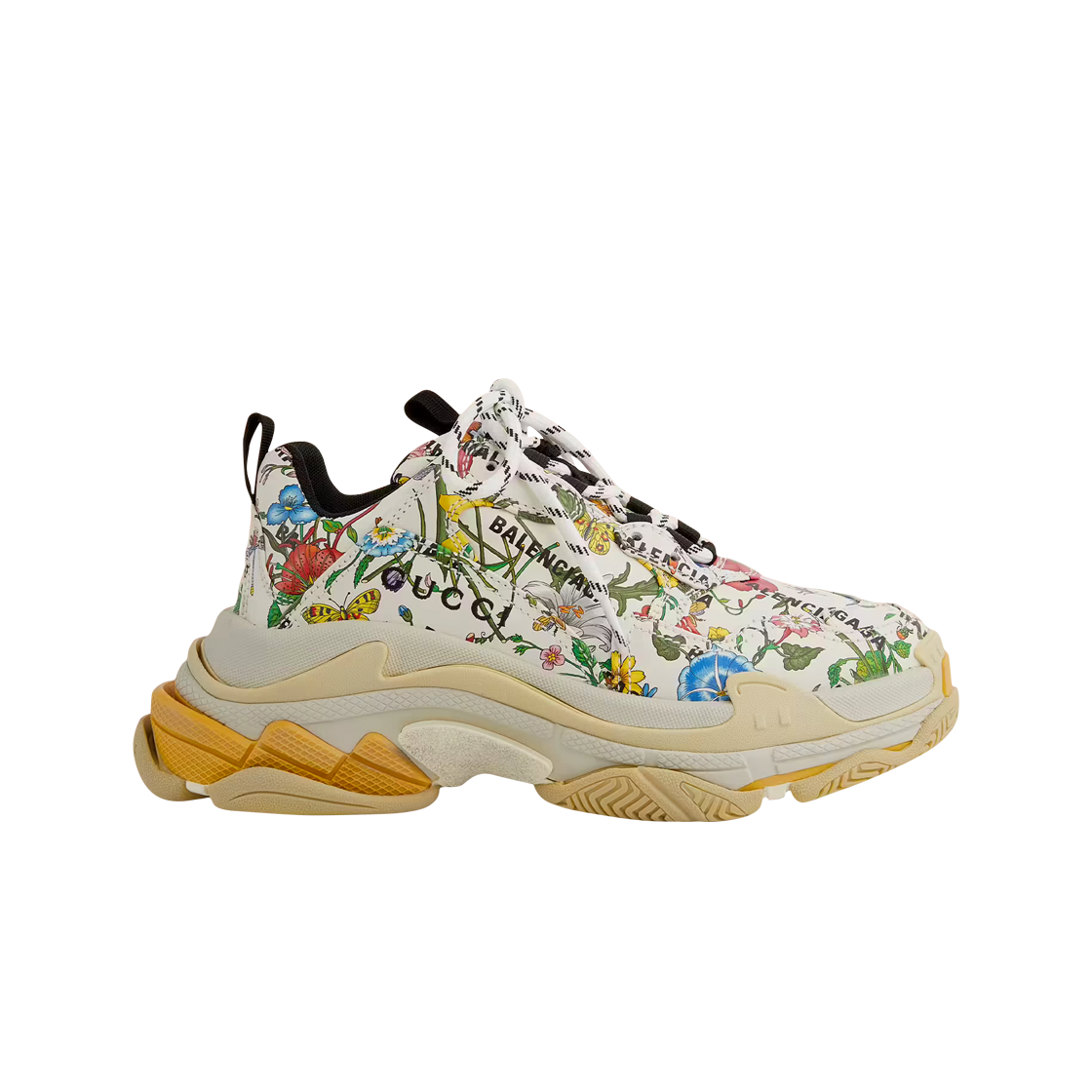 (W) 발렌시아가 x 구찌 해커 프로젝트 트리플 S 스니커즈 멀티컬러 레더 플로라 프린트 아이보리