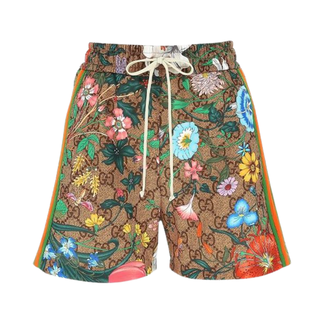 구찌 GG 플로라 프린트 쇼츠 빈티지 카멜 브라운