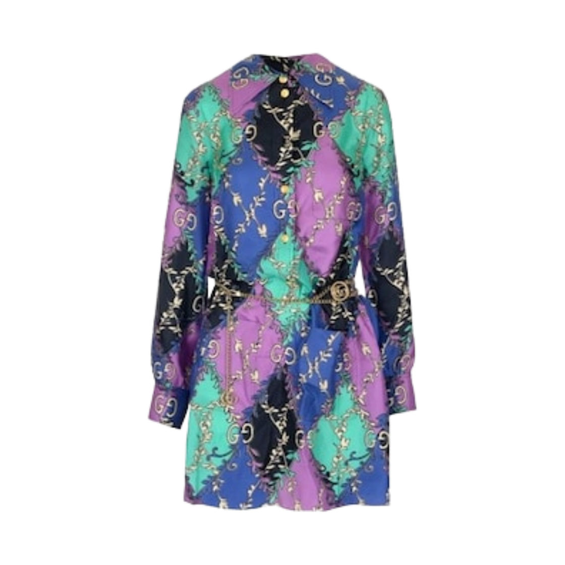 (W) 구찌 GG 플로라 프린트 실크 드레스 멀티컬러
