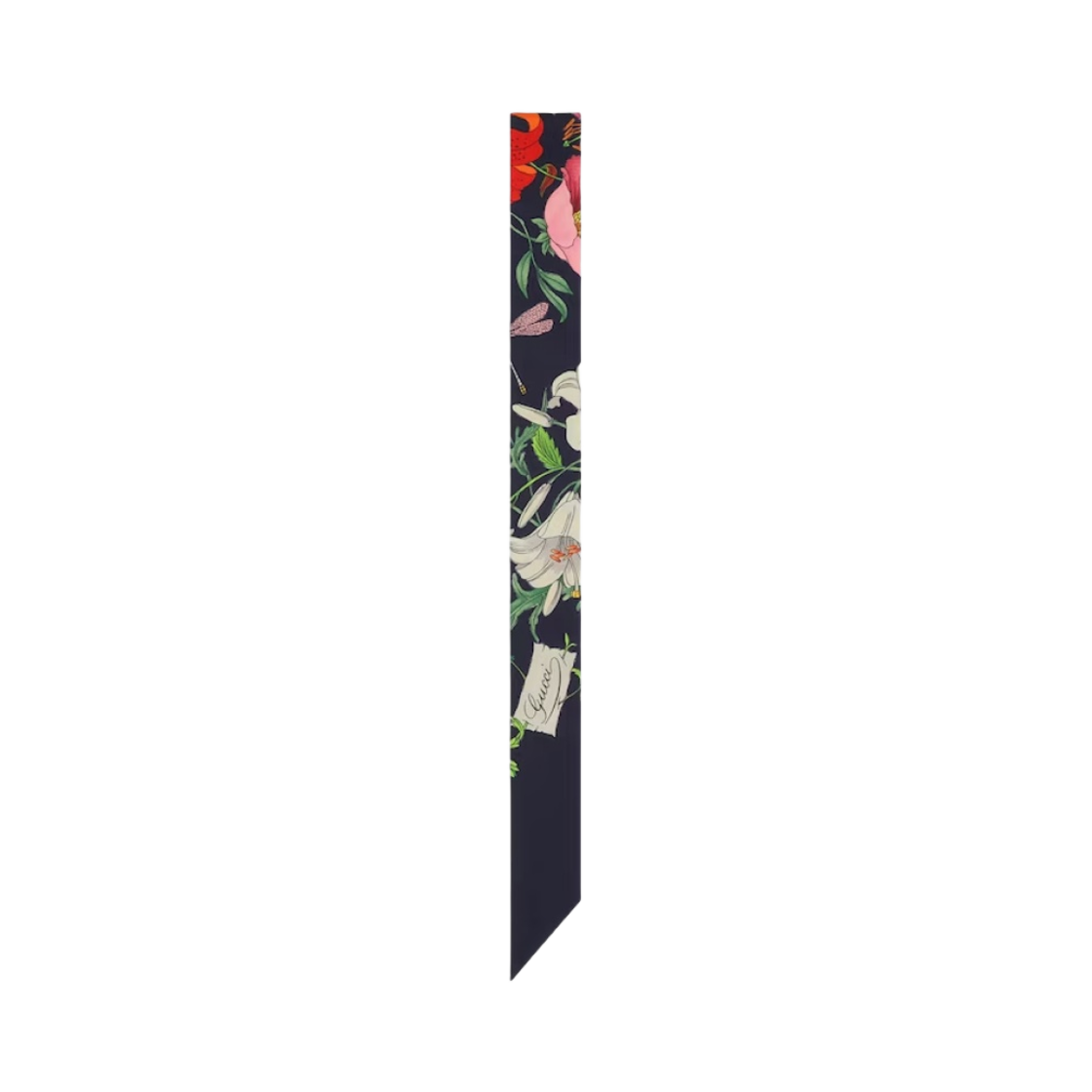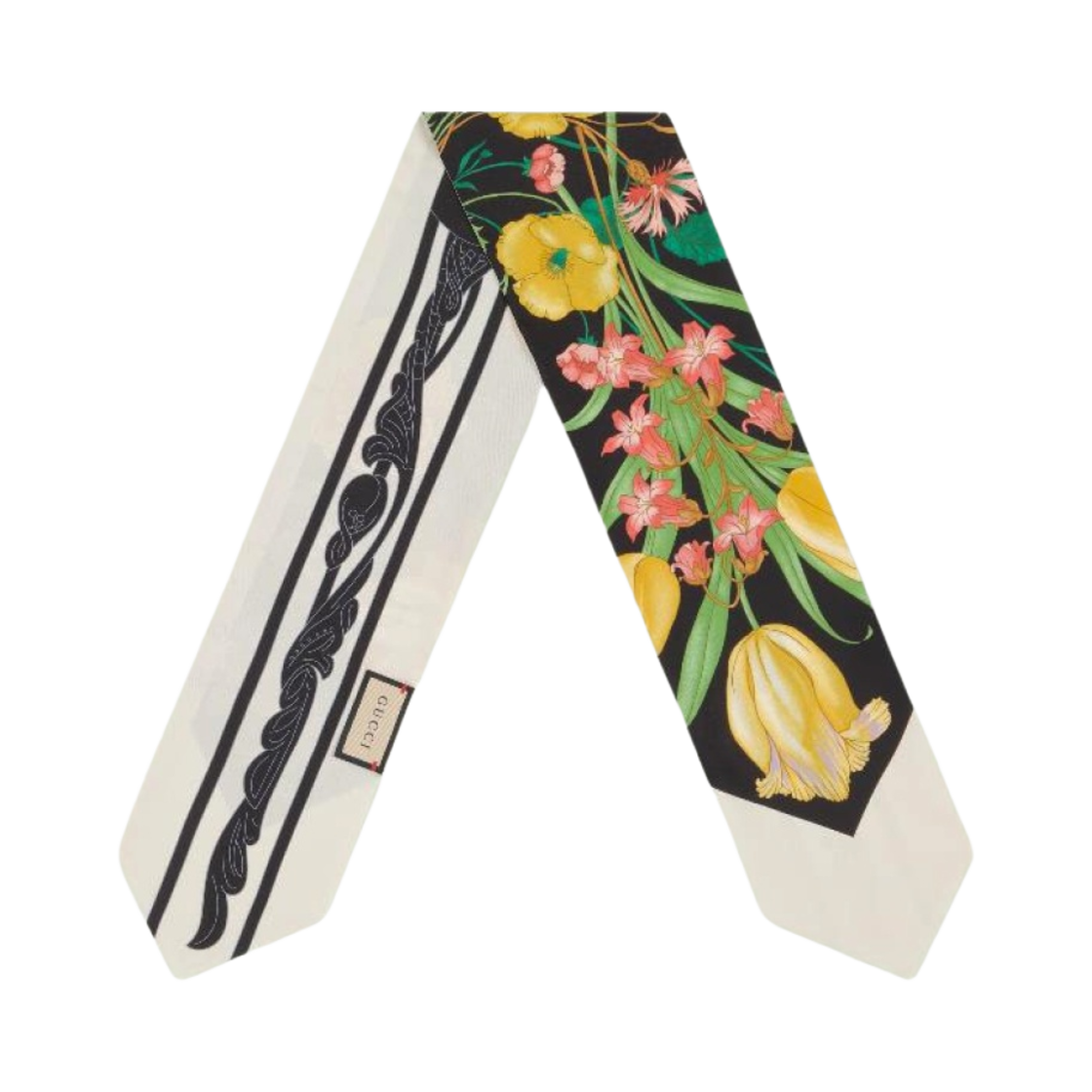 (W) 구찌 플로라 프린트 실크 트윌 넥 보우 블랙 멀티컬러