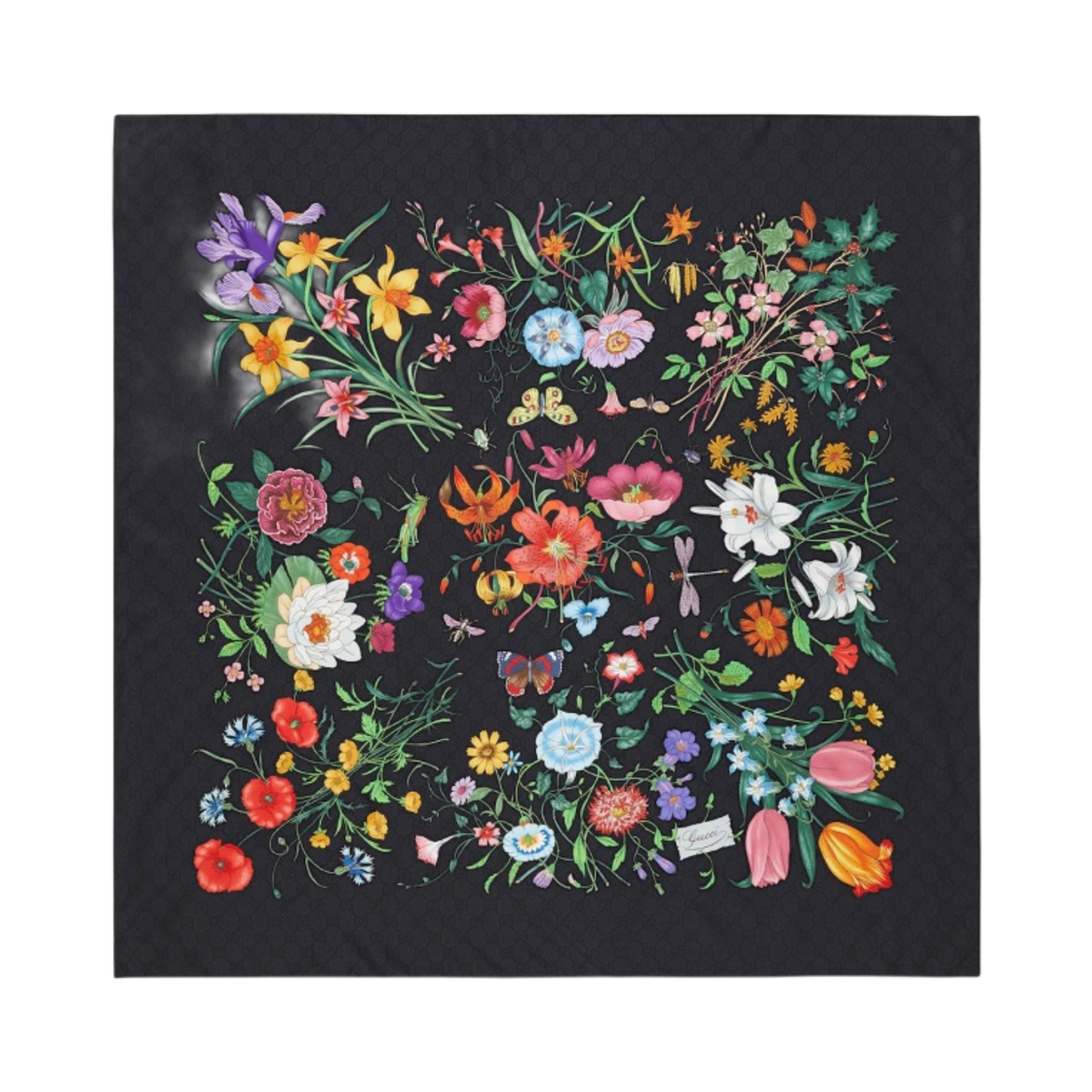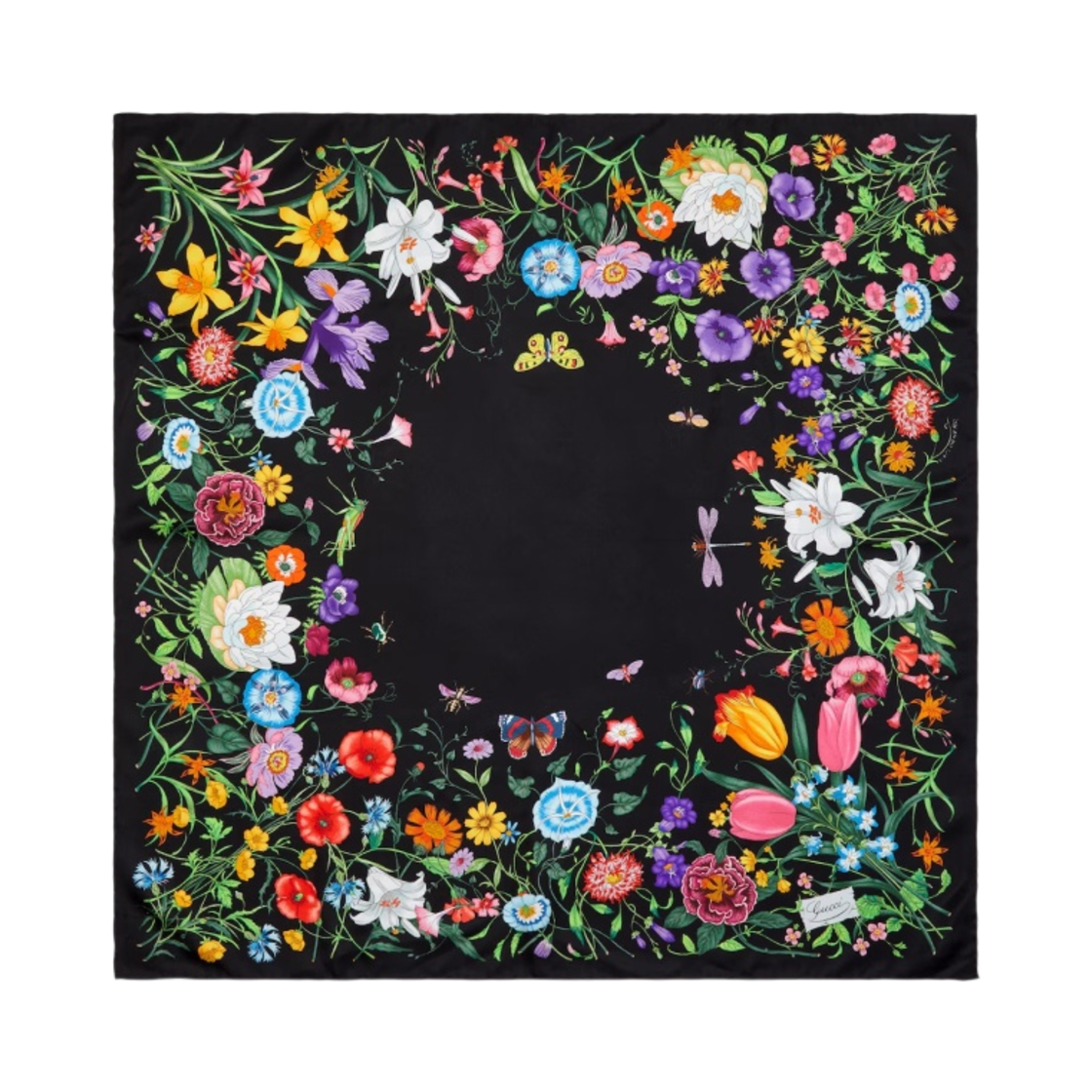 (W) 구찌 플로라 프린트 실크 트윌 스카프 블랙 멀티컬러