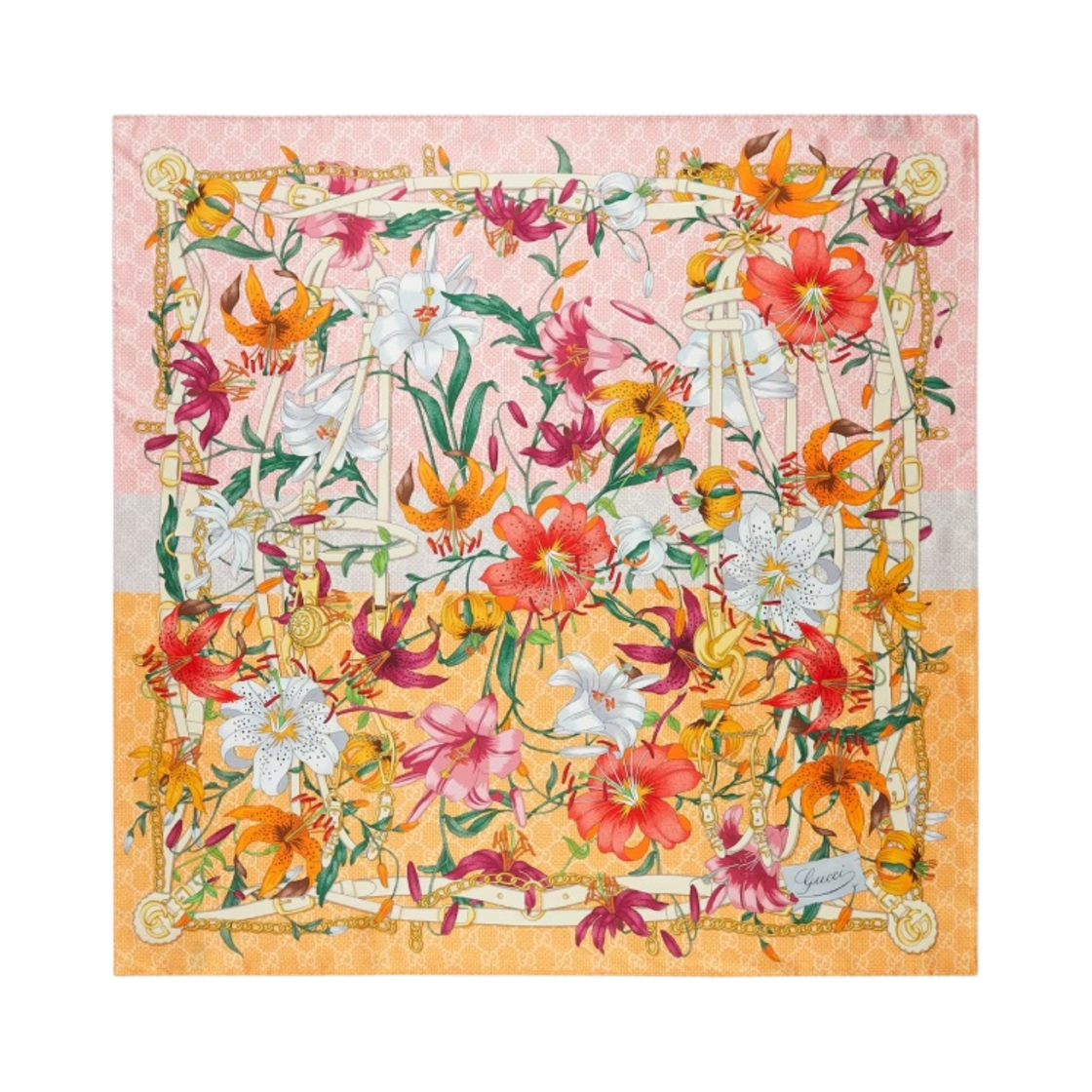 (W) 구찌 GG 플로라 프린트 실크 스카프 핑크