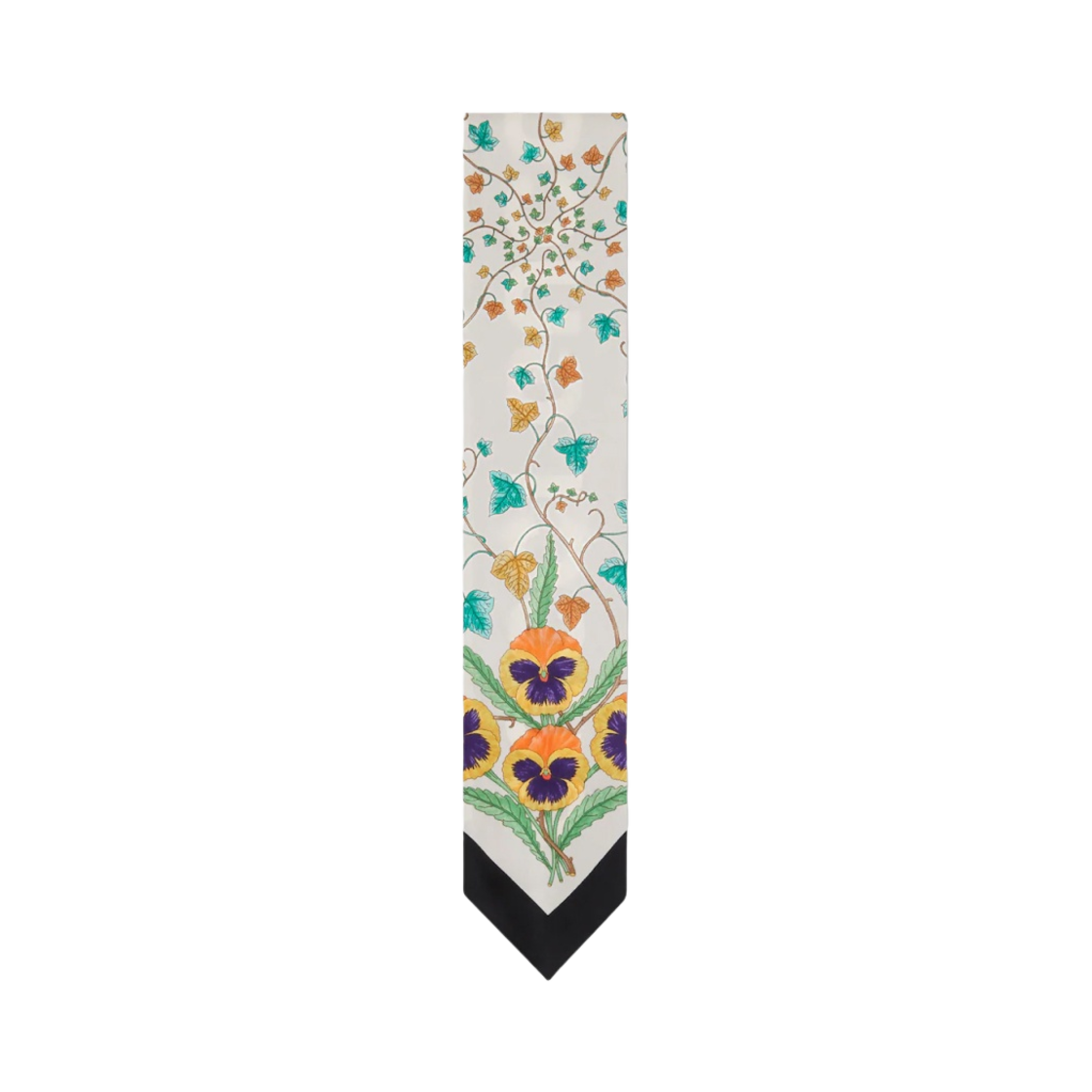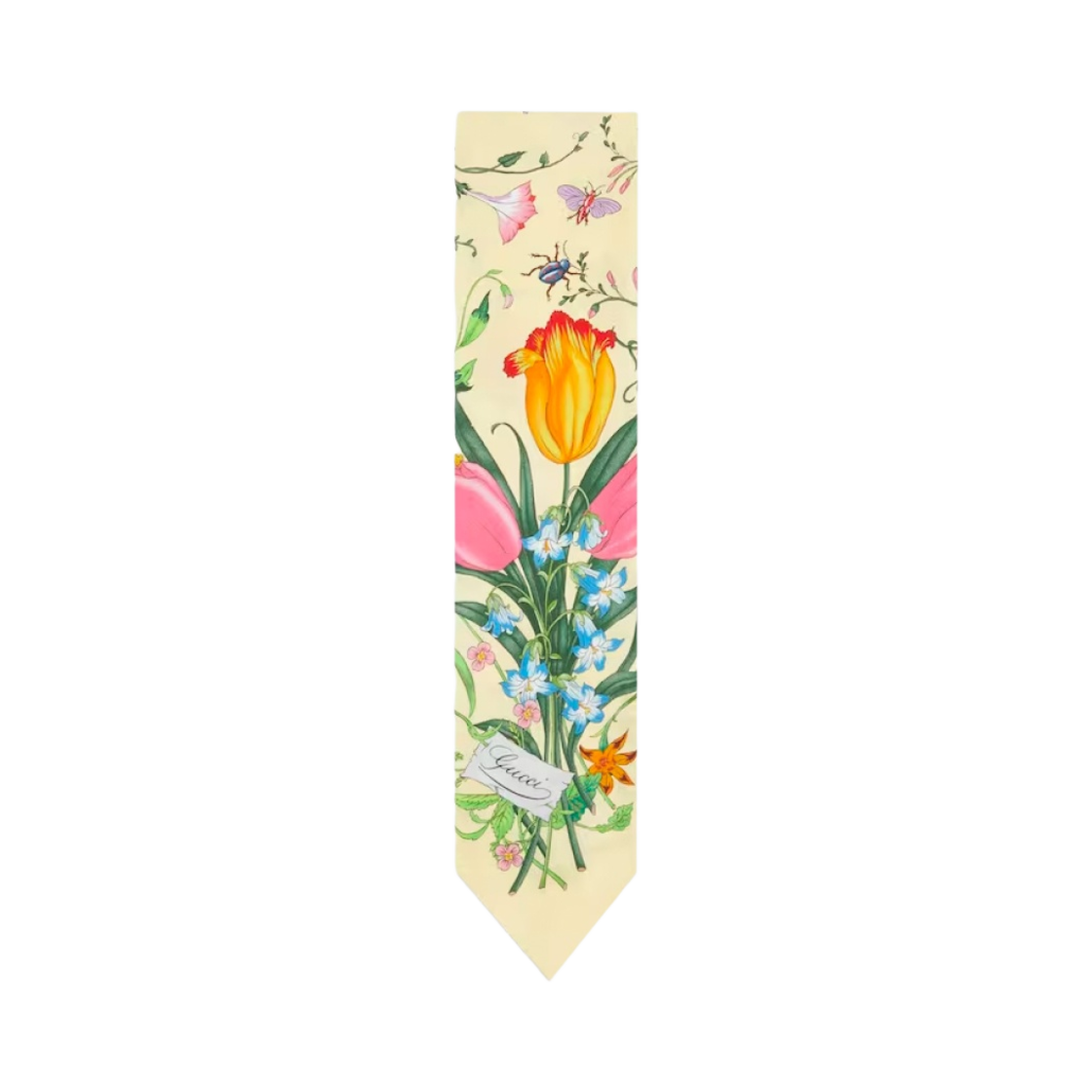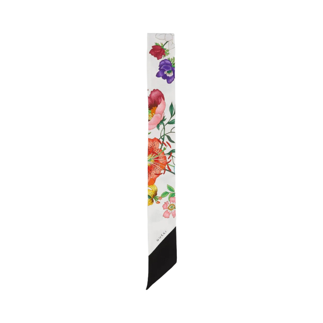 (W) 구찌 플로라 프린트 실크 트윌 넥 보우 화이트 플로라 프린트