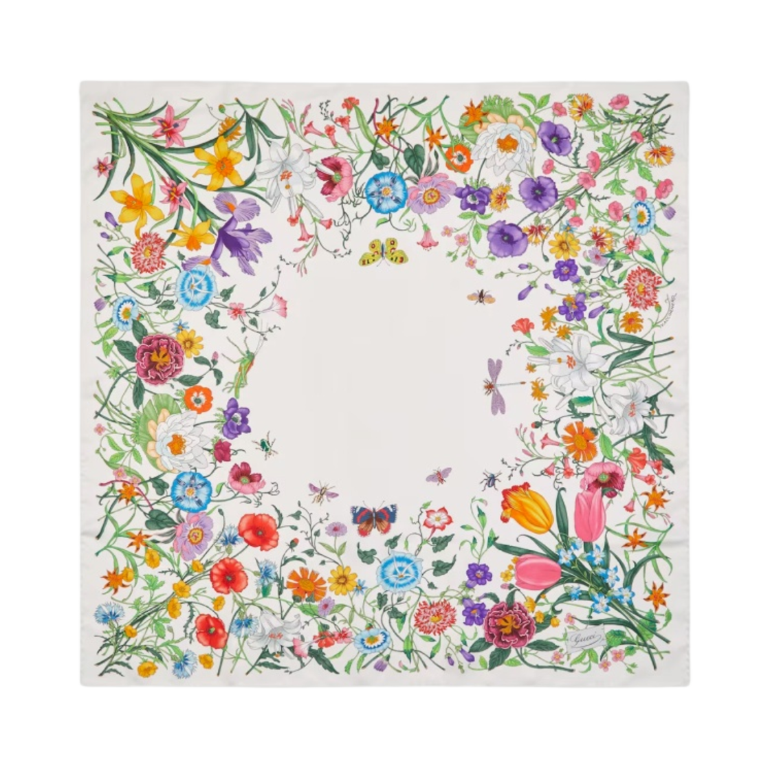 (W) 구찌 플로라 프린트 실크 까레 화이트 멀티컬러