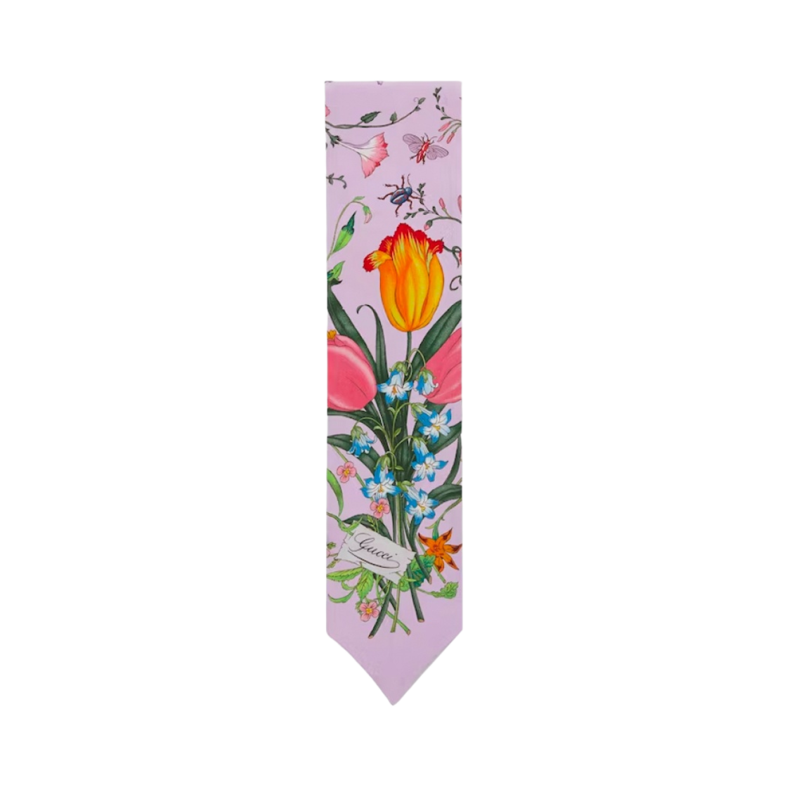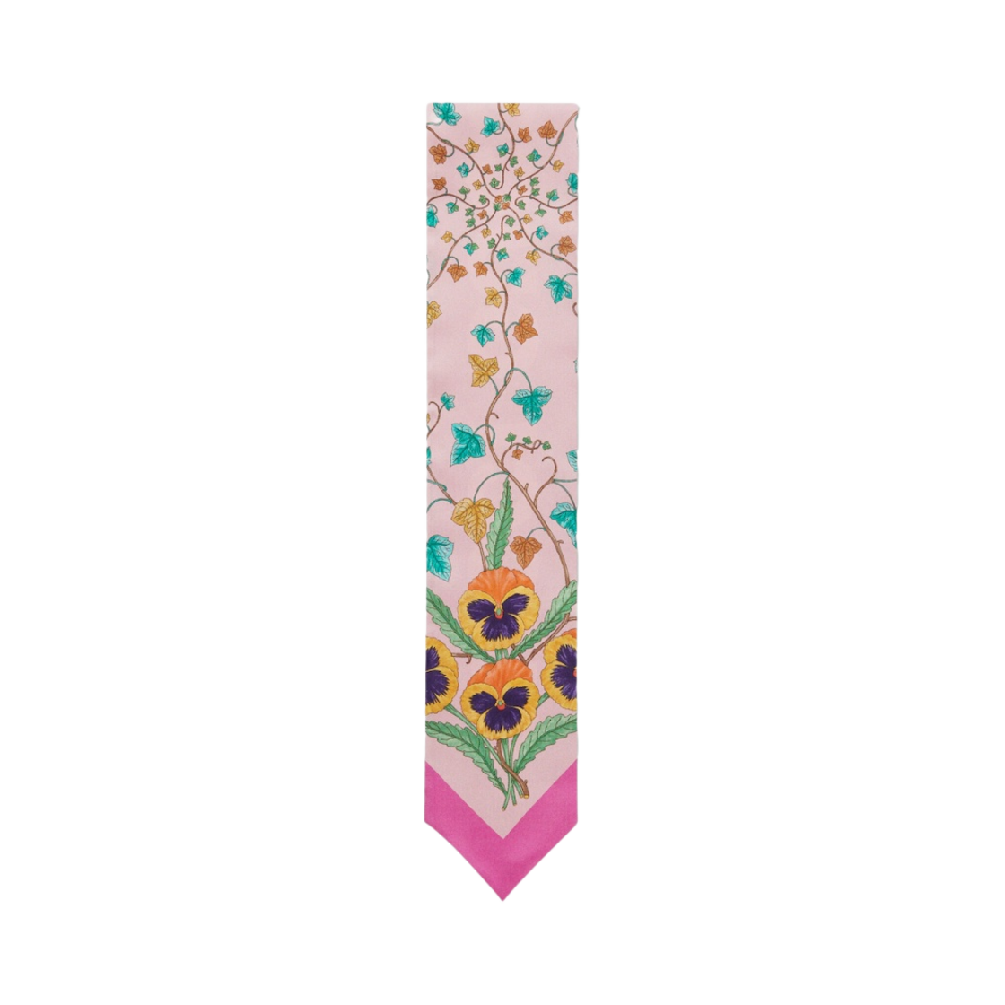 (W) 구찌 플로라 프린트 실크 트윌 넥 보우 핑크 멀티컬러