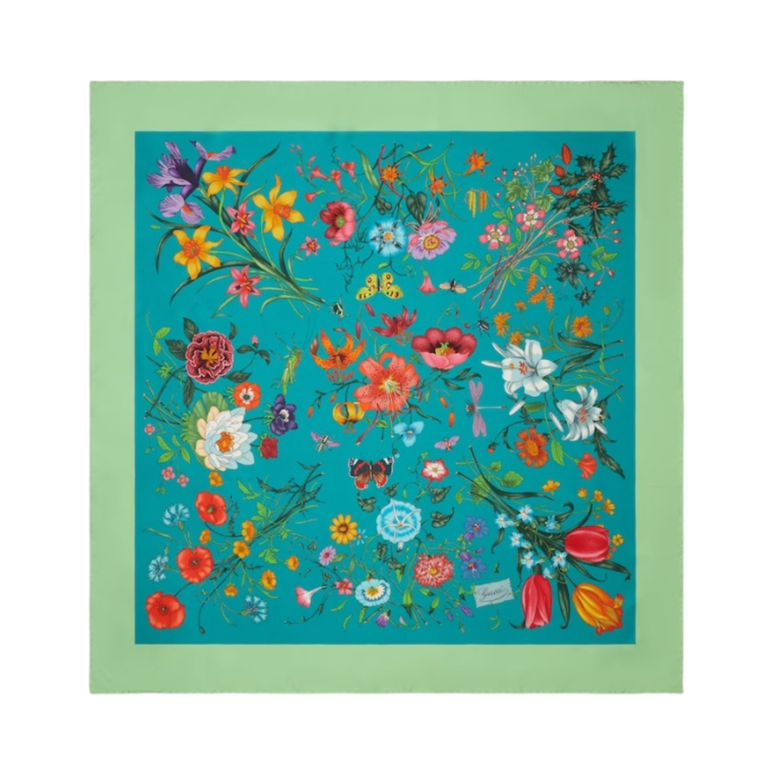 (W) 구찌 플로라 프린트 실크 까레 그린 터콰이즈