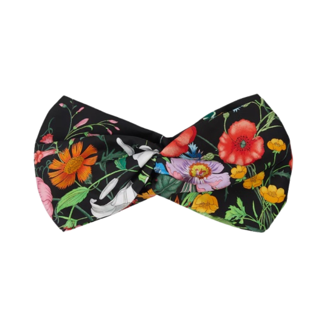 (W) 구찌 플로라 프린트 실크 헤드밴드 블랙 멀티컬러