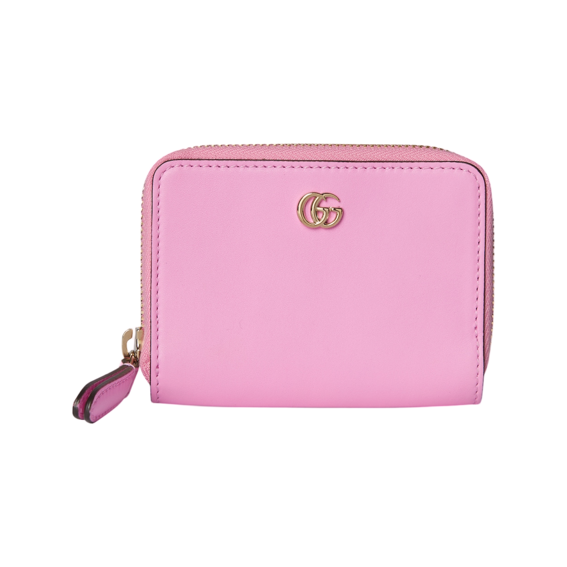 구찌 GG 마몽 미니 집 월렛 플로라 핑크