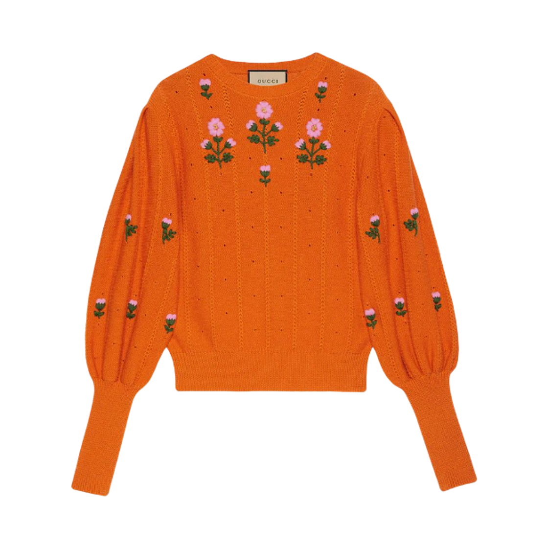 (W) 구찌 플로라 울 코튼 니트 오렌지