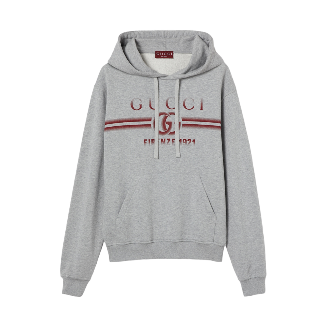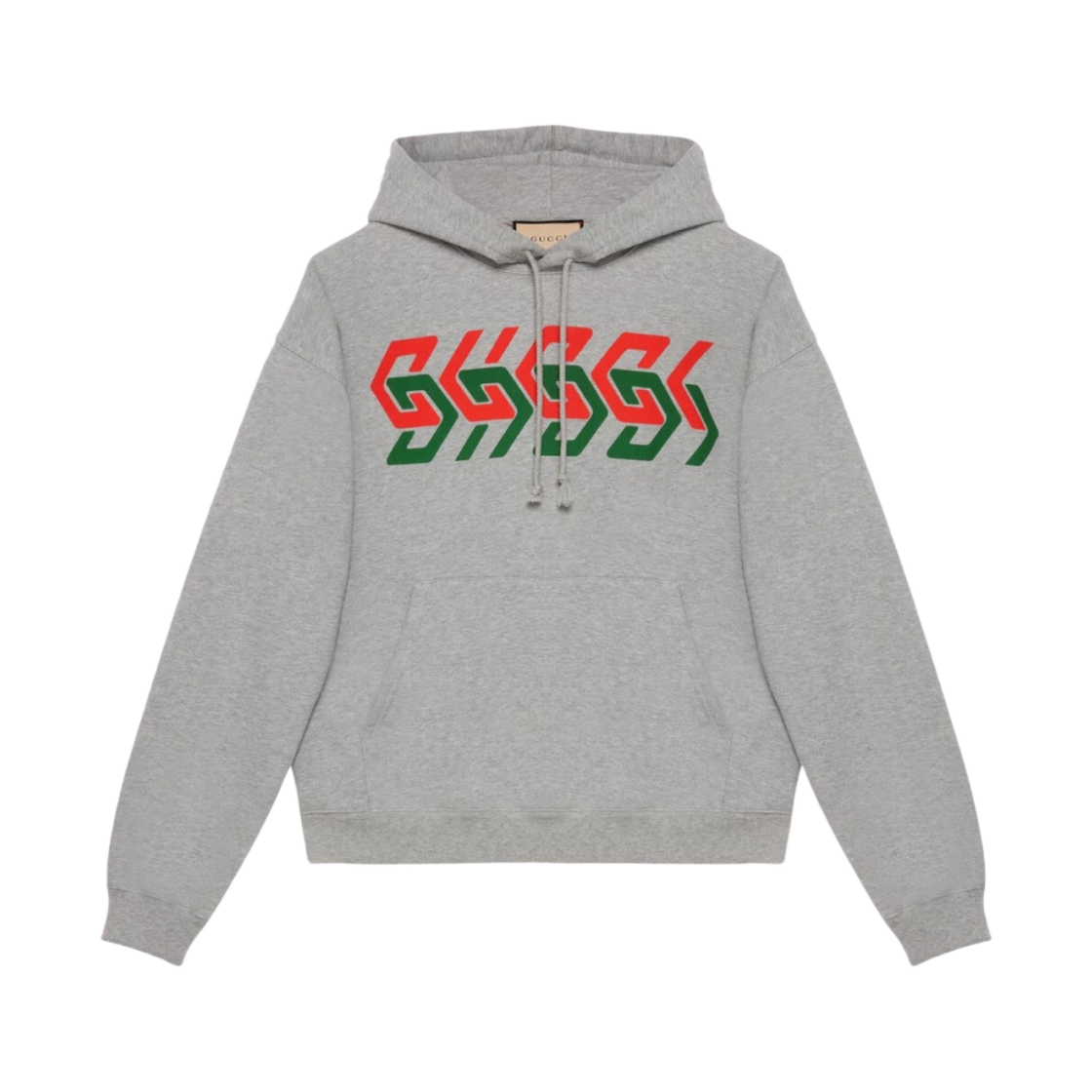 구찌 코튼 저지 후드 스웨트셔츠 그레이 멜란지 펠티드 코튼 저지