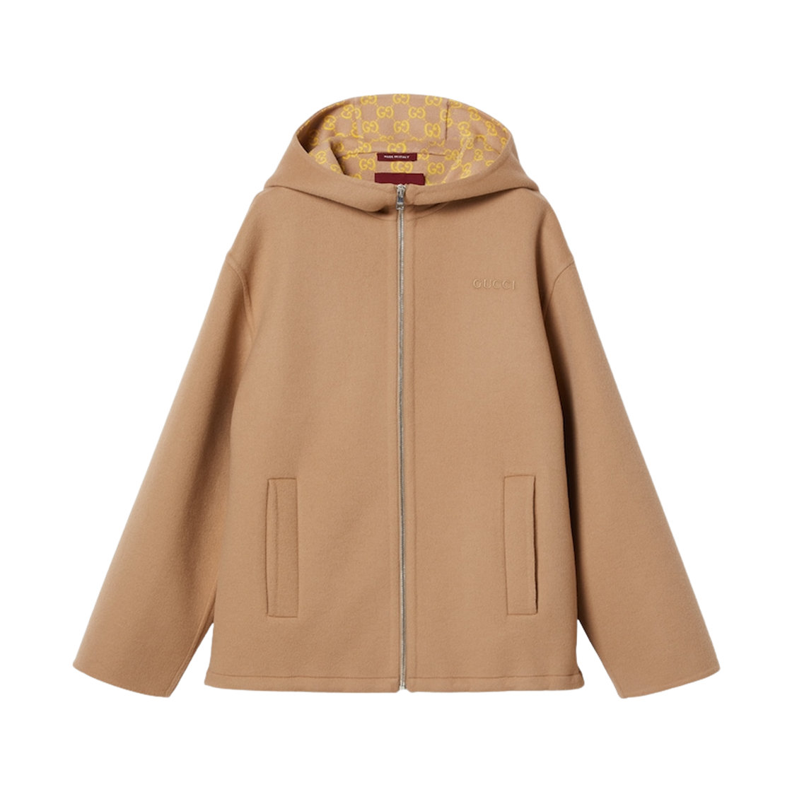 (W) 구찌 자수 울 실크 후드 자켓 카멜 옐로우