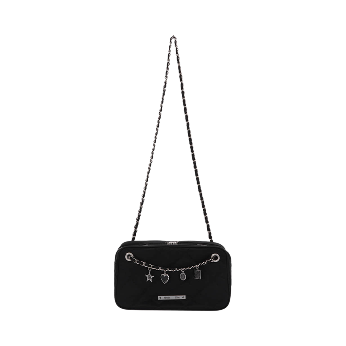 마뗑킴 펜던트 패브릭 퀼팅 미들 백 블랙