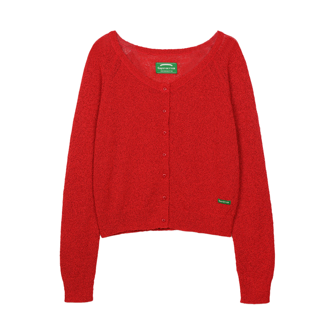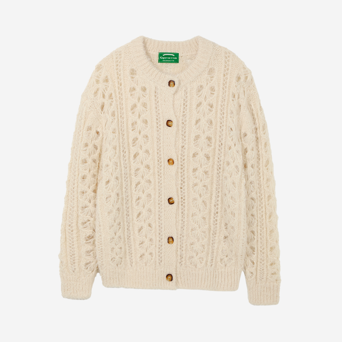 그린버터 모헤어 헤어리 스카시 가디건 라이트 베이지