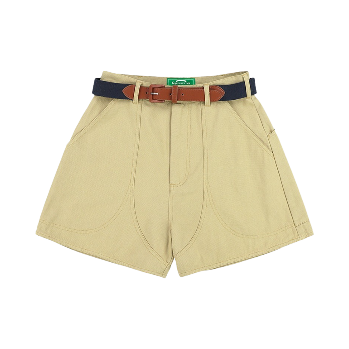 그린버터 우먼 워시드 라인 숏츠 벨트 세트 베이지