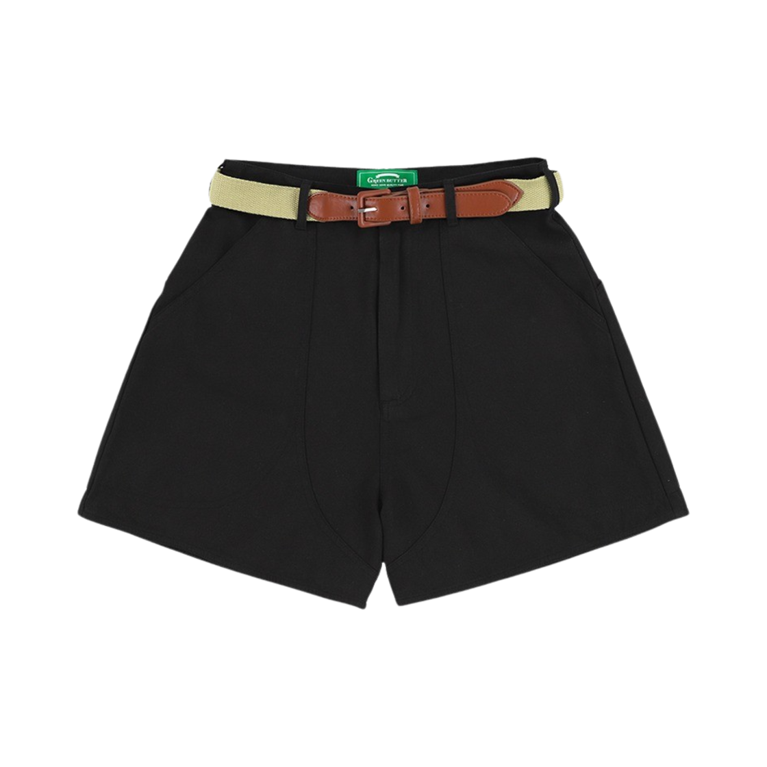 그린버터 우먼 워시드 라인 숏츠 벨트 세트 블랙