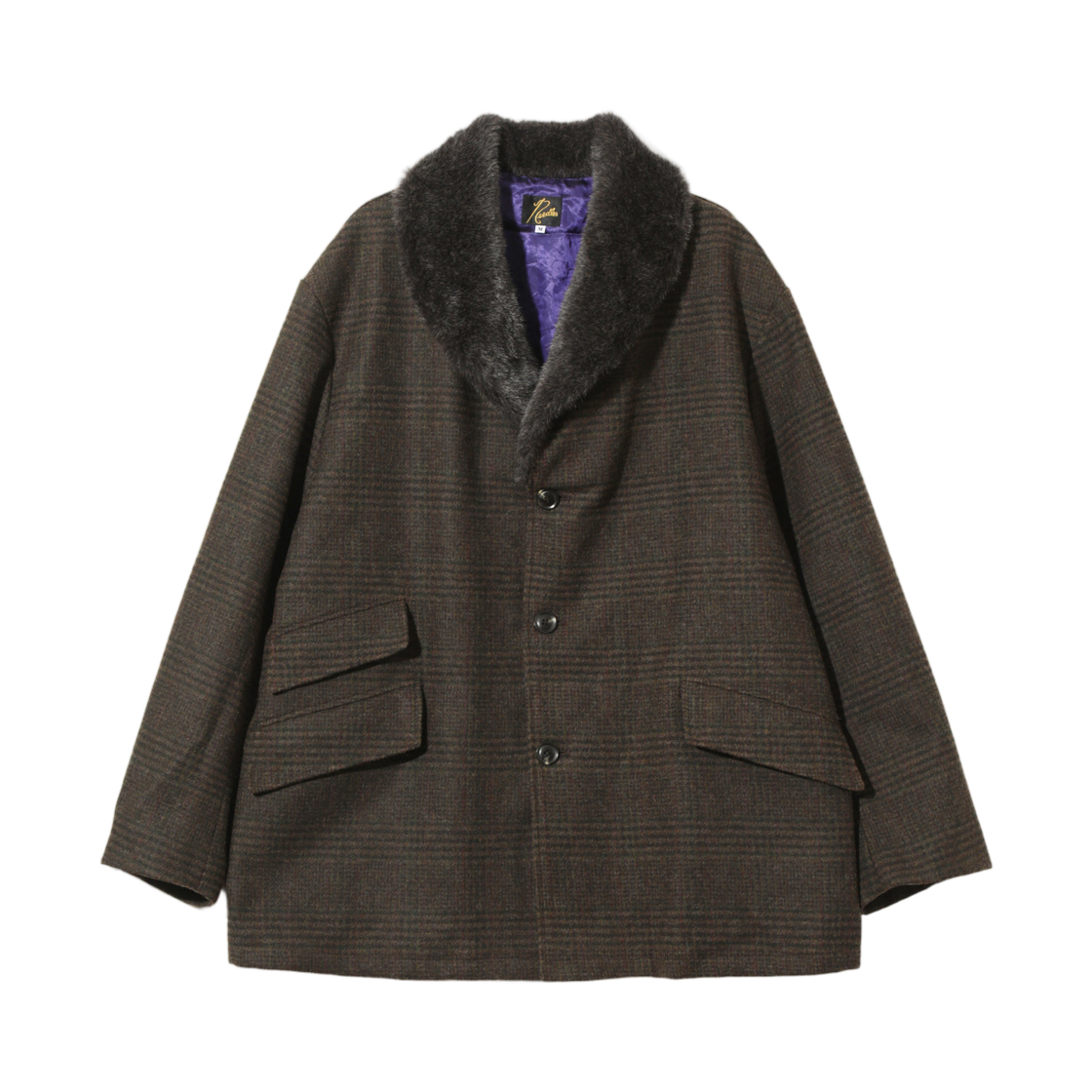니들스 숄 칼라 코트 울 글렌 플레이드 올리브