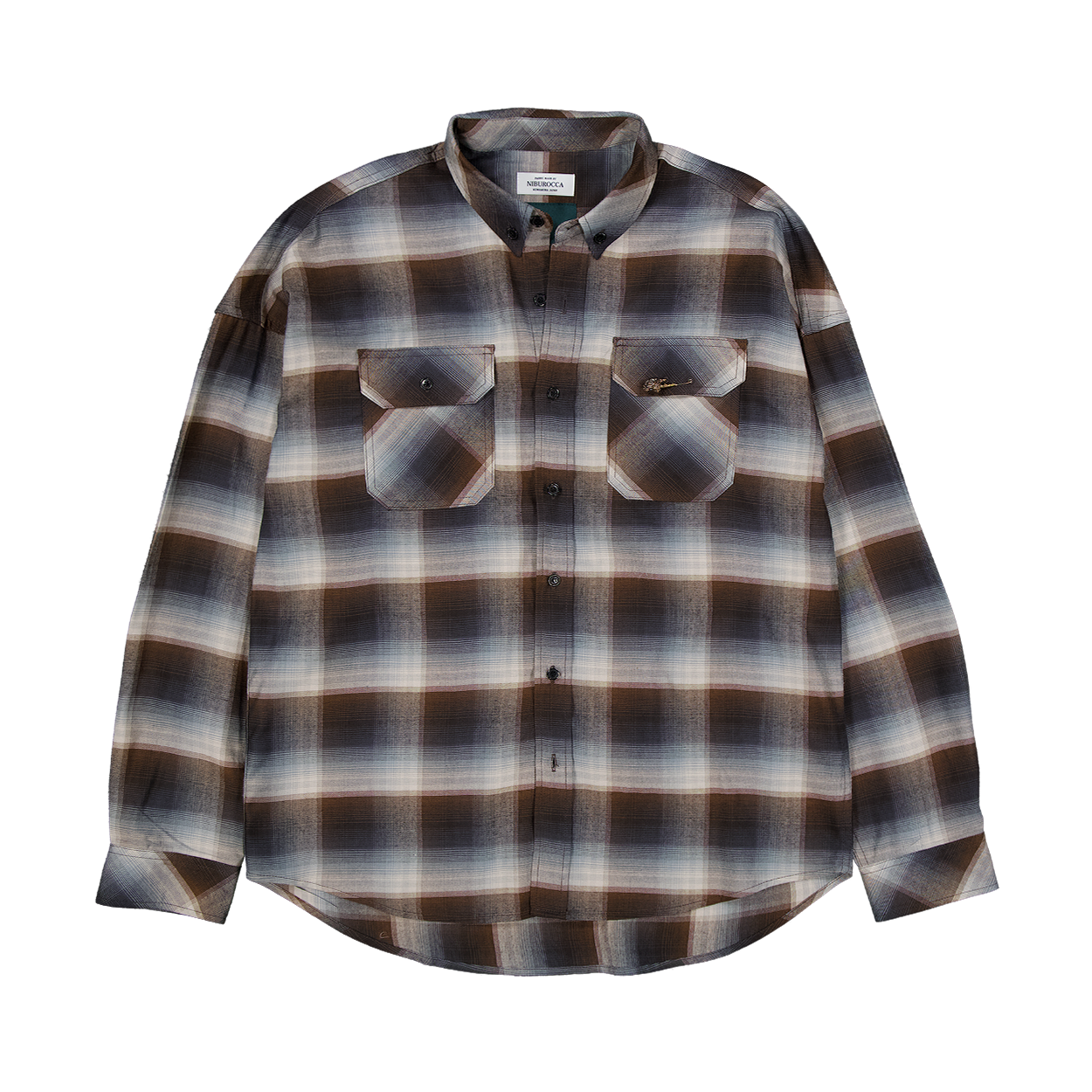 언더마이카 앤티크 로즈 핀 재패니즈 패브릭 글렌 체크 셔츠 모카 블루