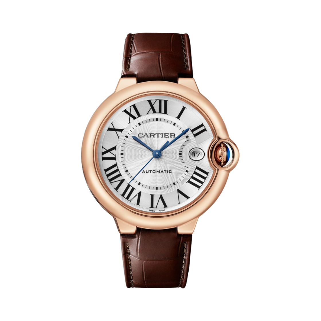 까르띠에 발롱 블루 드 워치 42mm 오토매틱 핑크 골드 레더