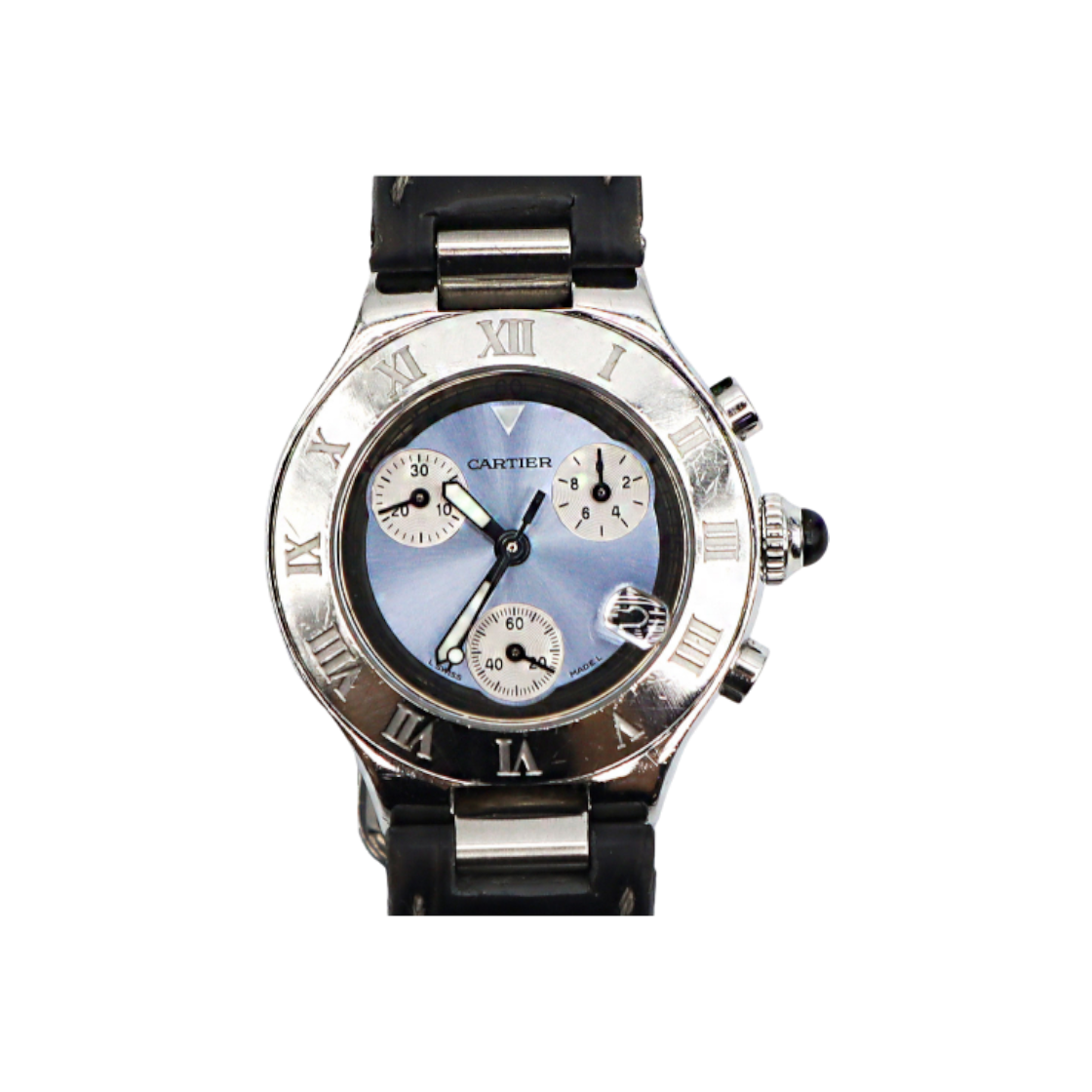 까르띠에 W1020013 31MM 스틸 쿼츠 크로노스카프 21 SM 실버드 블루 여성 시계
