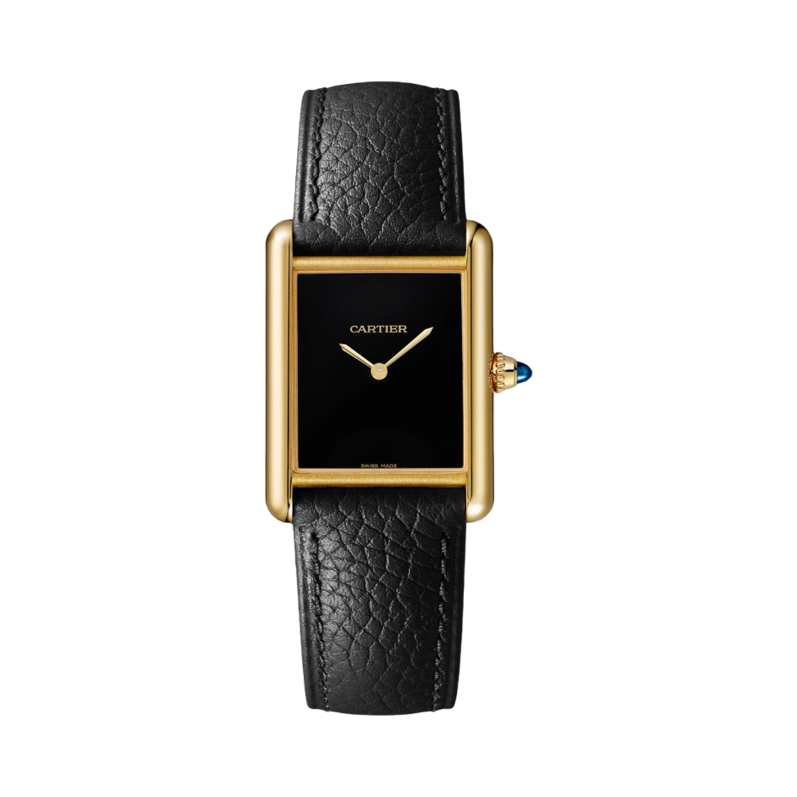 까르띠에 탱크 루이 워치 라지 옐로우 골드 레더