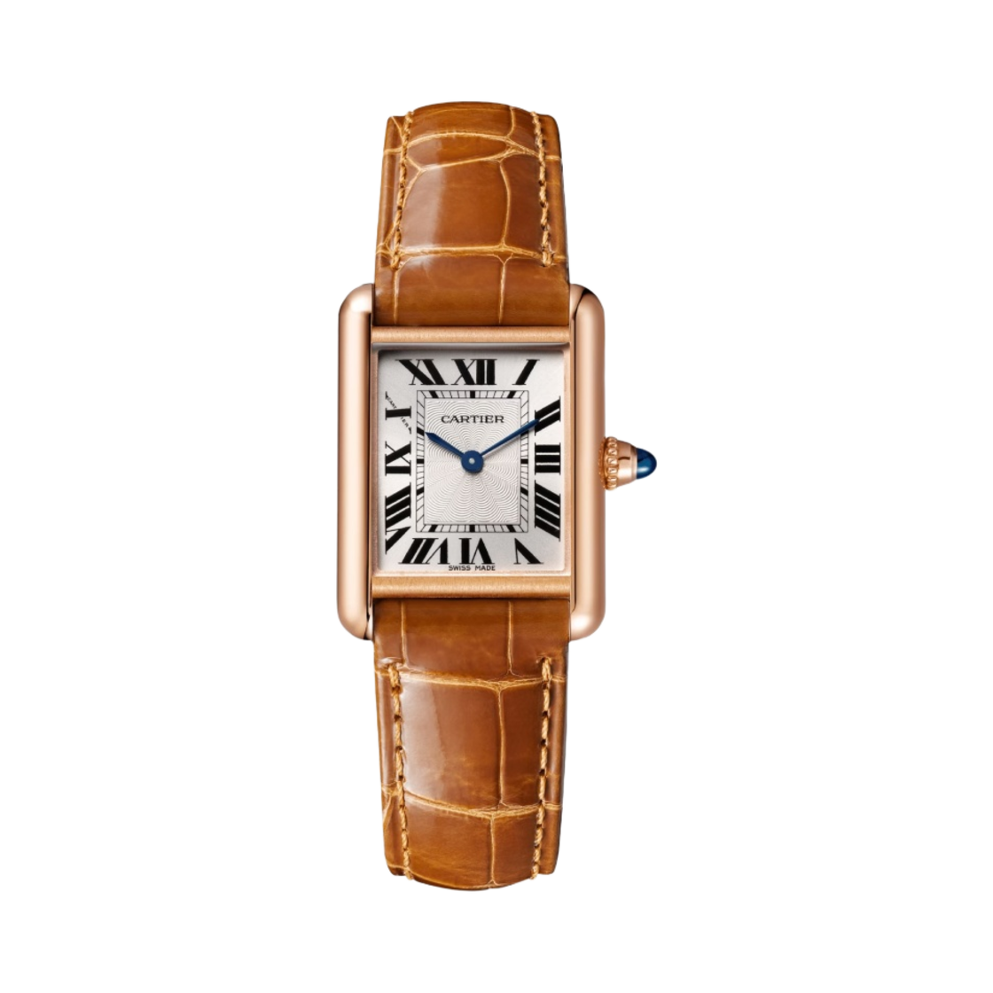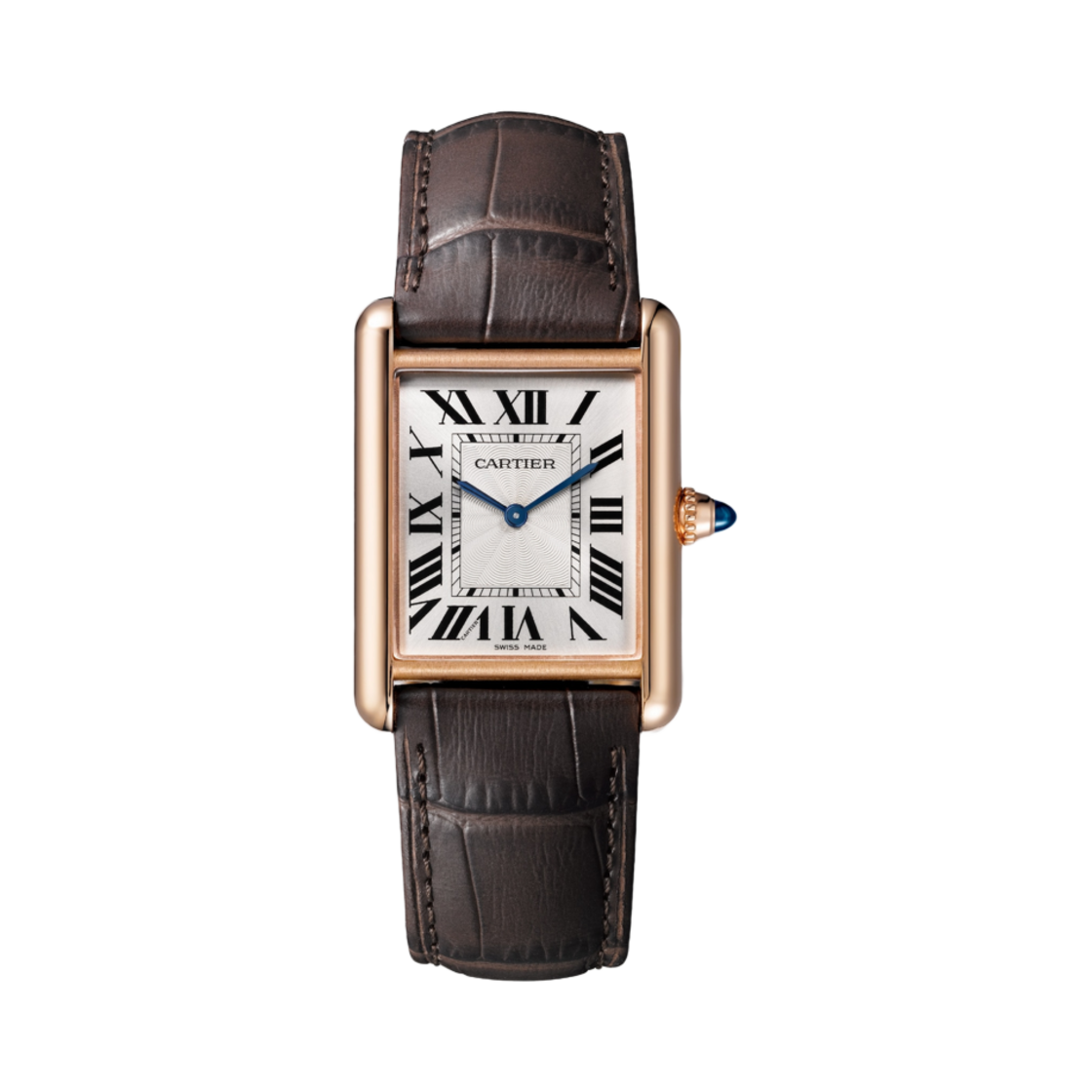 까르띠에 탱크 루이 워치 스몰 매뉴얼 와인딩 로즈 골드 샤이니 앨리게이터 스킨 브라운
