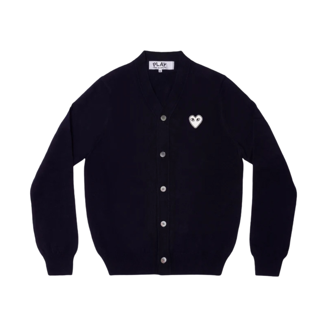 플레이 꼼데가르송 화이트 하트 니트 가디건 네이비