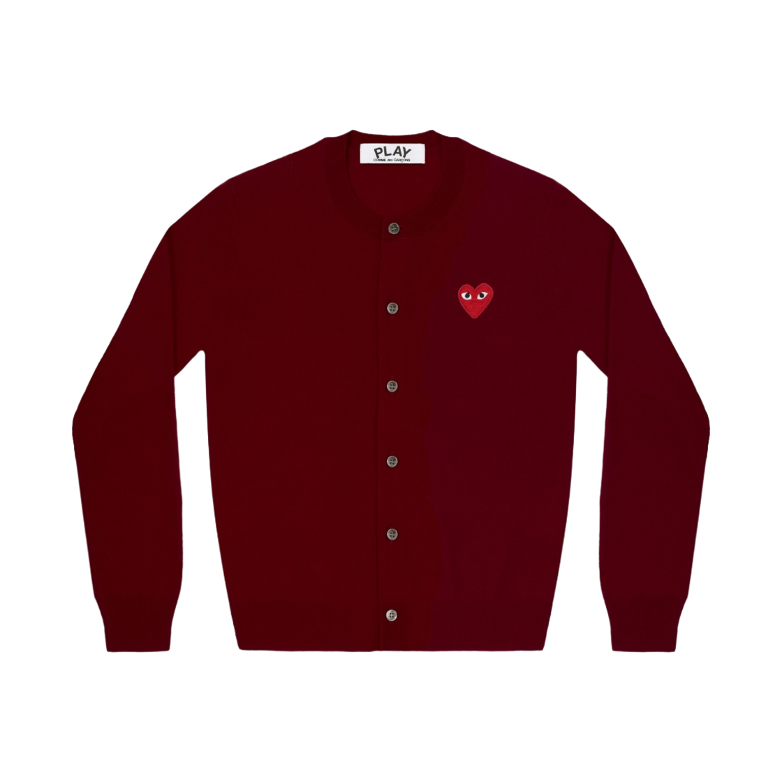 (W) 플레이 꼼데가르송 레드 하트 니트 가디건 버건디