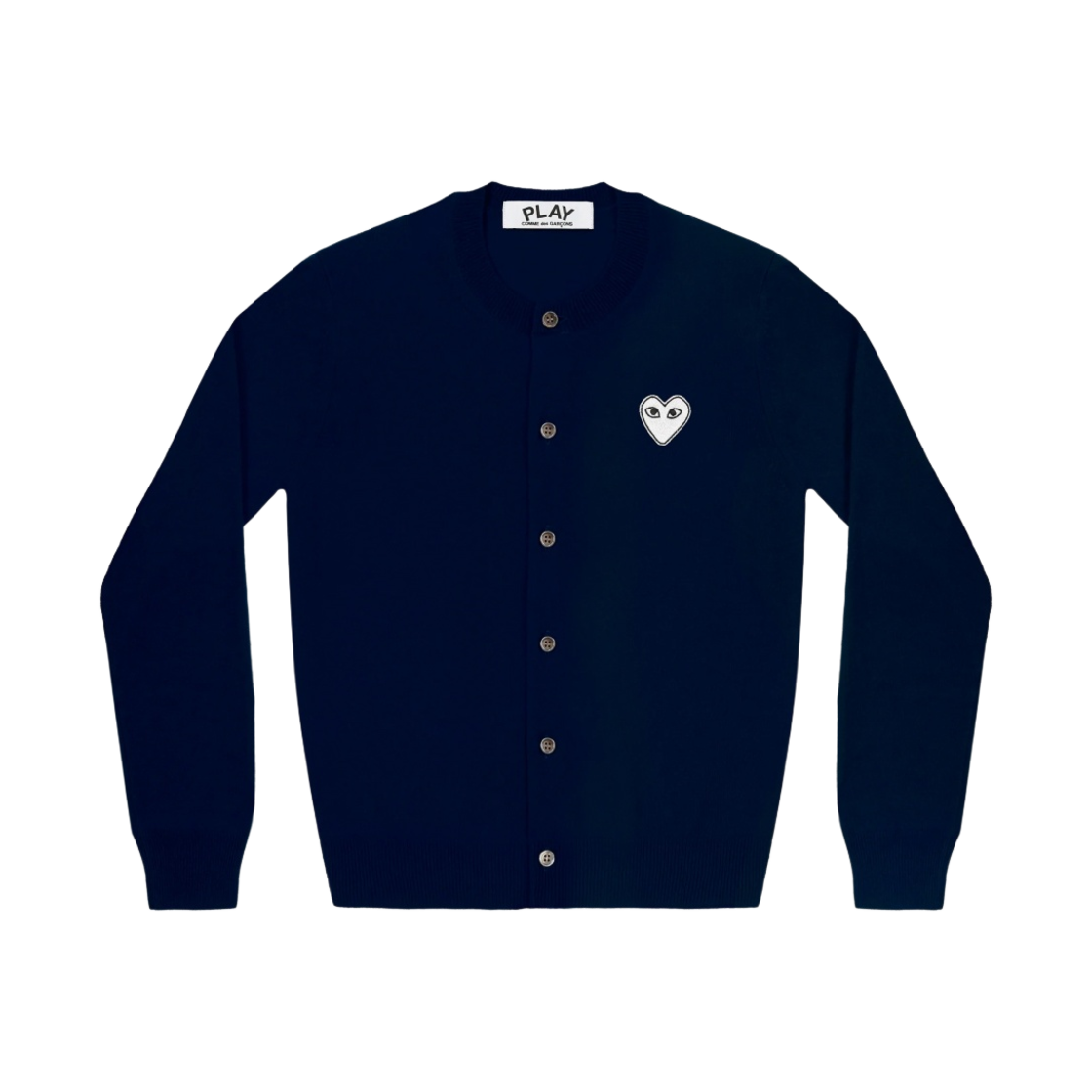 플레이 꼼데가르송 화이트 하트 니트 가디건 네이비