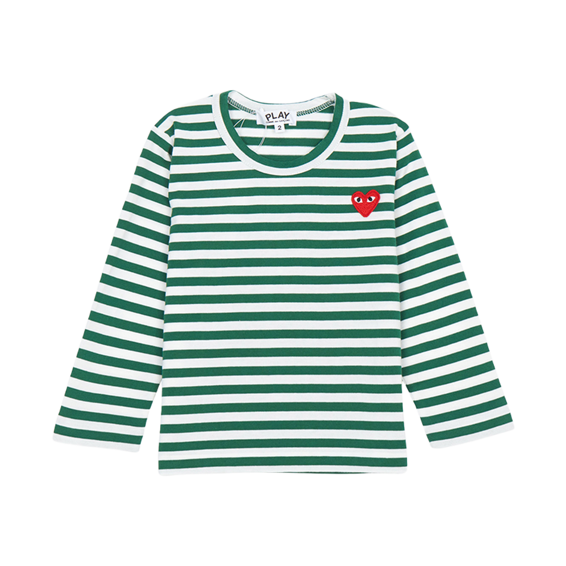 (키즈) 플레이 꼼데가르송 레드와펜 스트라이프 롱 슬리브 티셔츠 그린