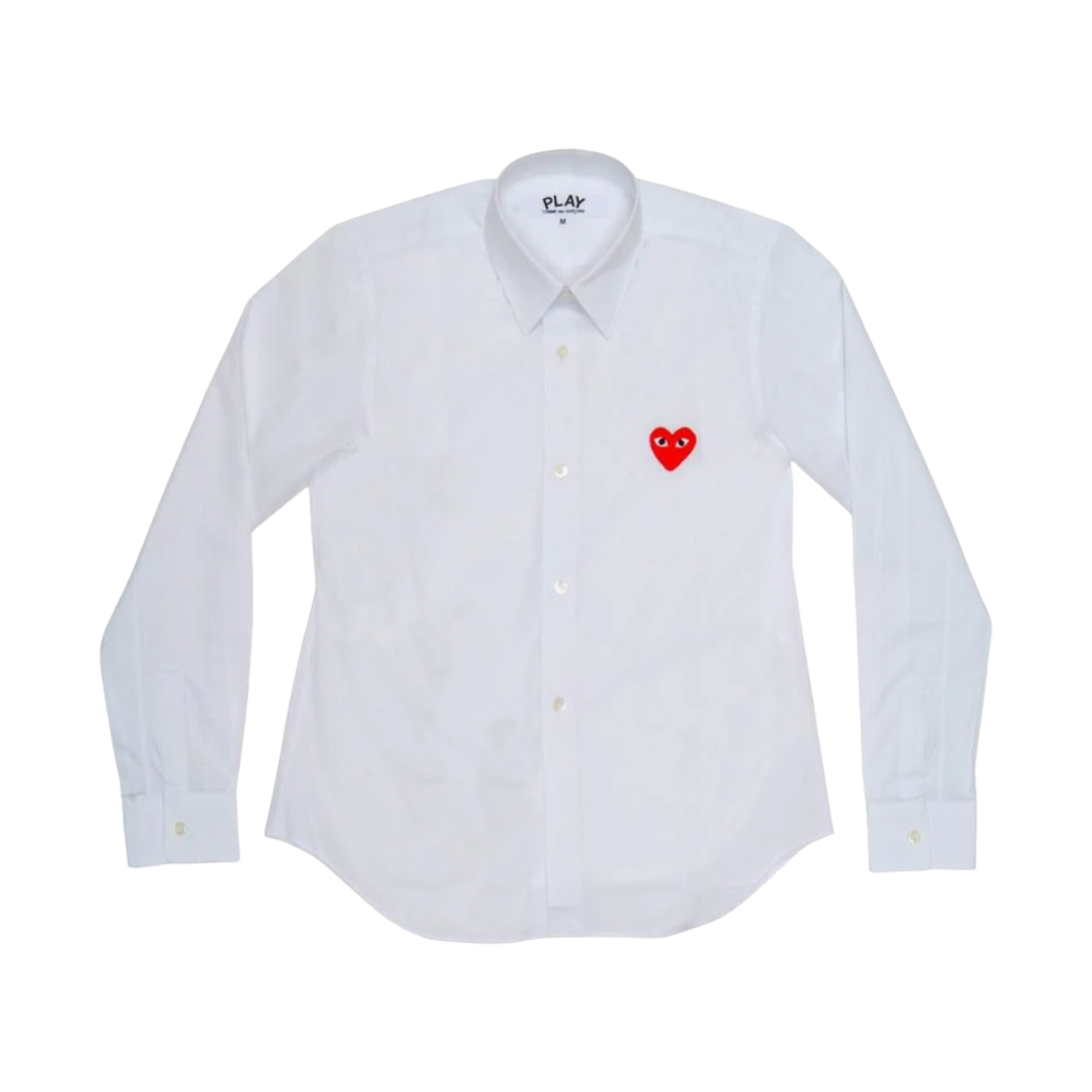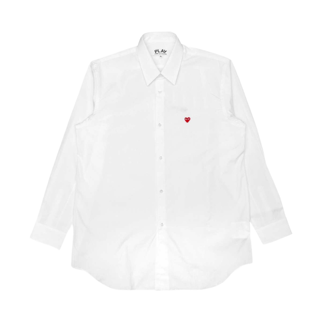 플레이 꼼데가르송 리틀 레드 하트 버튼 다운 셔츠 화이트