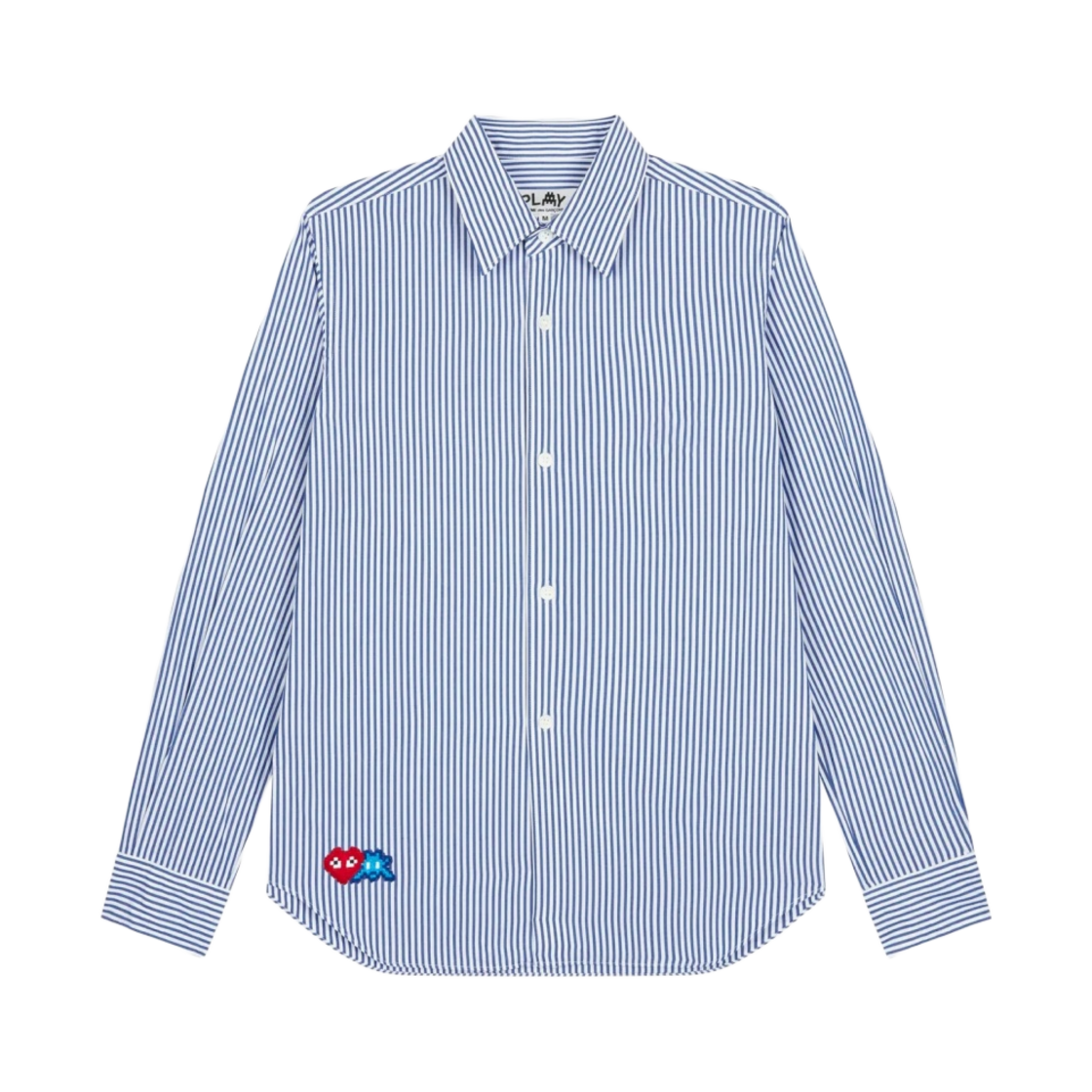 플레이 꼼데가르송 x 인베이더 코튼 브로드 스트라이프 셔츠 블루