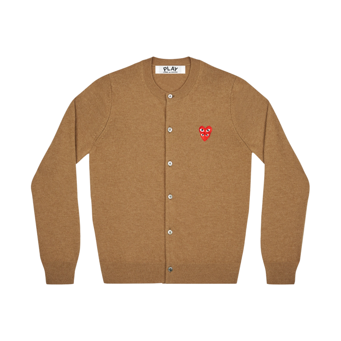 (W) 플레이 꼼데가르송 더블 하트 니트 가디건 브라운