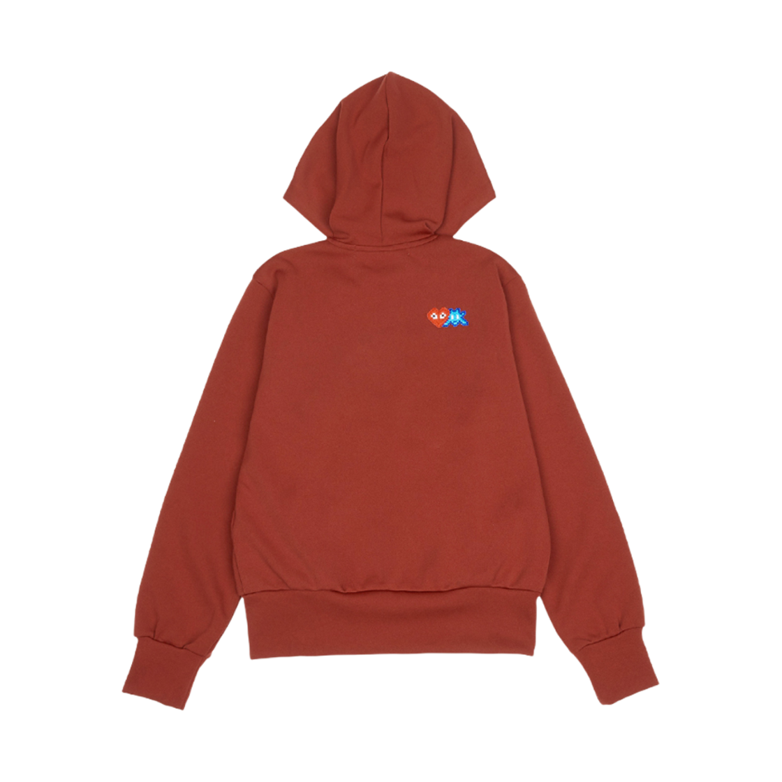 플레이 꼼데가르송 x 인베이더 더블 픽셀 하트 후드 집업 레드