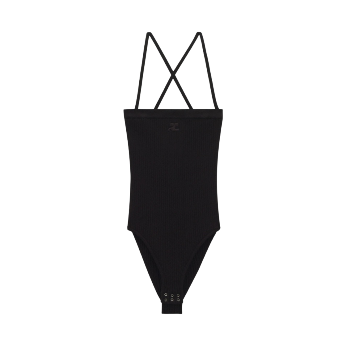 (W) 꾸레쥬 스트랩 크로스 바디수트 블랙