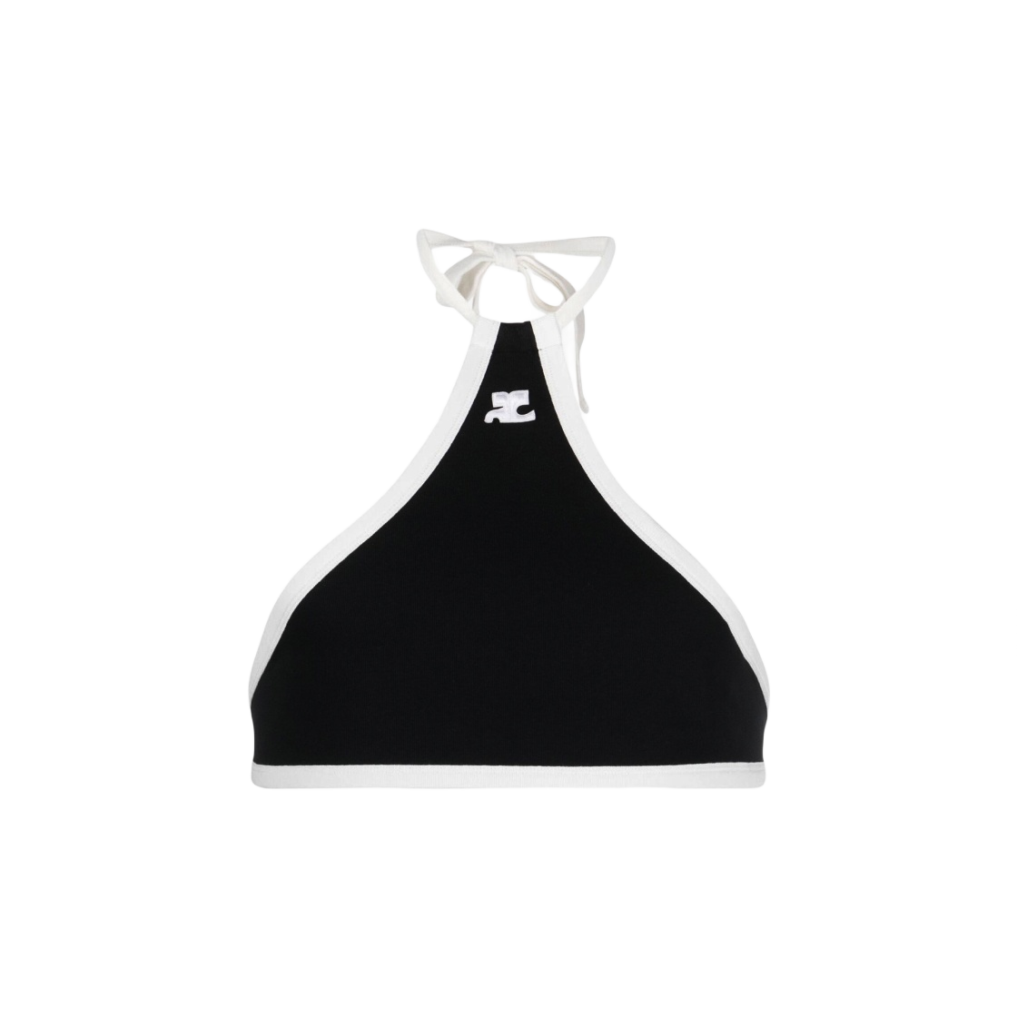 (W) 꾸레쥬 라이트 립 콘트라스트 크롭 탑 블랙 헤리티지 화이트