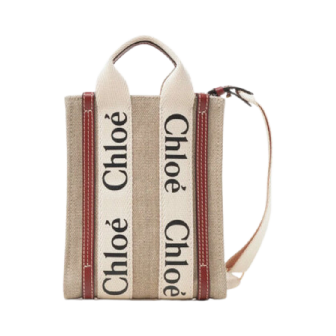 끌로에 린넨 우디 노스 사우스 미니 토트백 화이트 브라운
