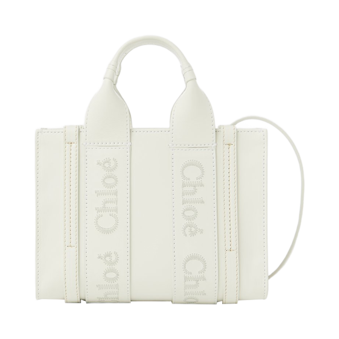 끌로에 린넨 우디 노스 사우스 미니 토트백 화이트 브라운