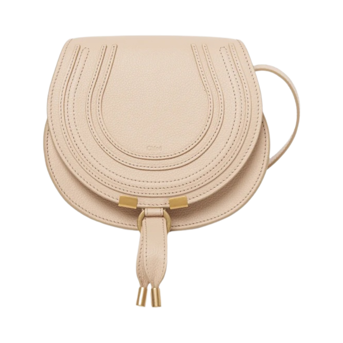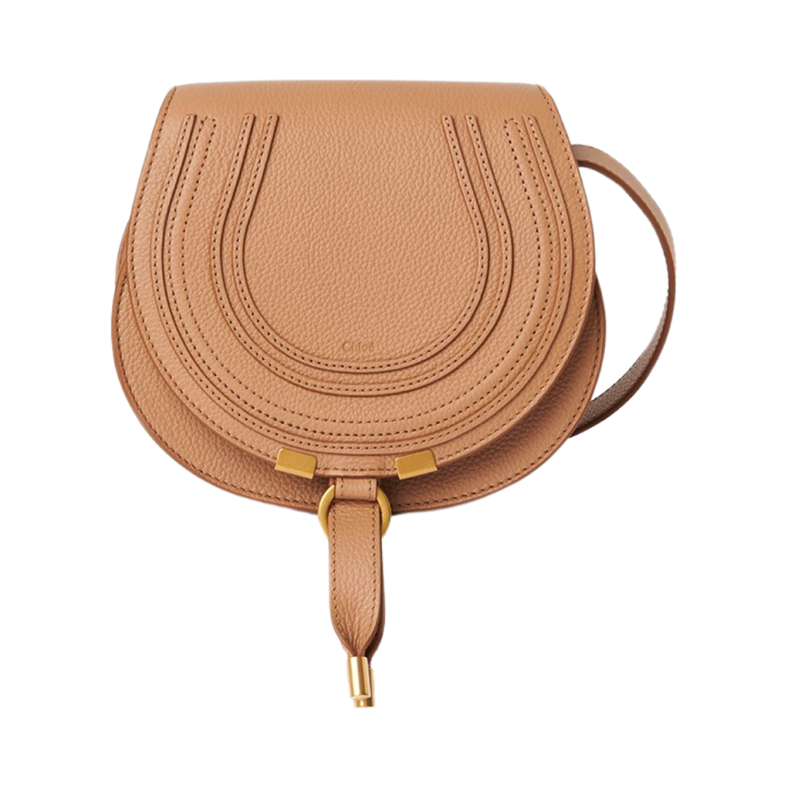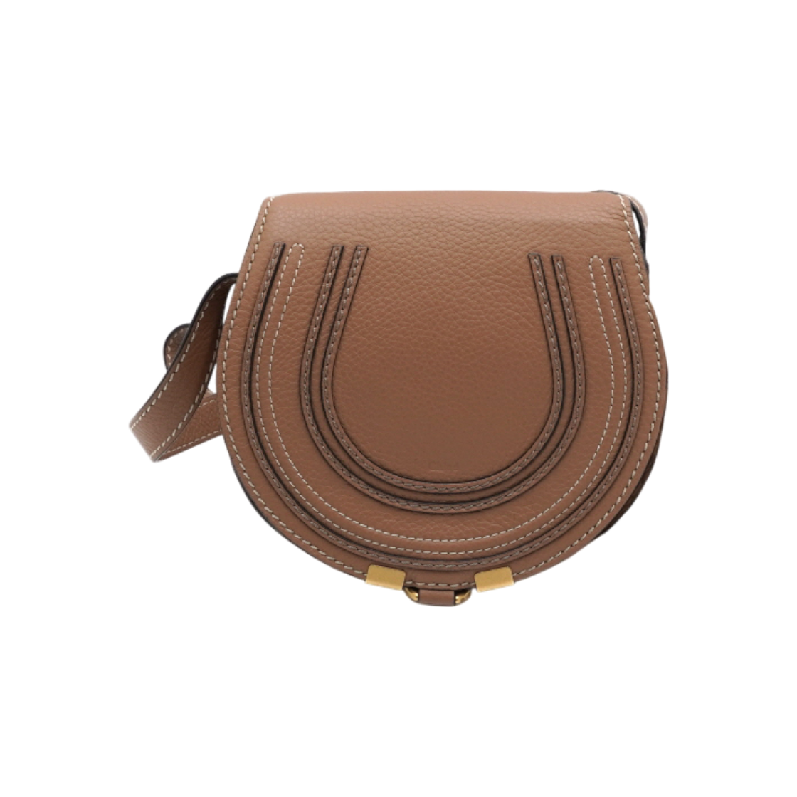 끌로에 그레인드 레더 마르씨 스몰 새들백 라이트 탄